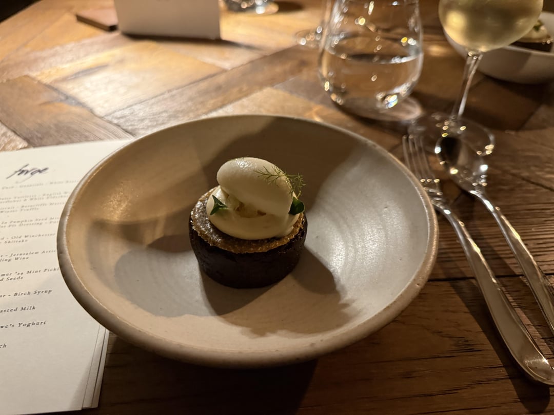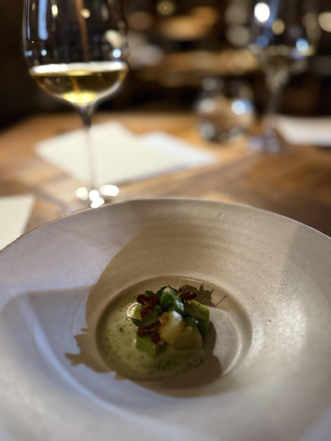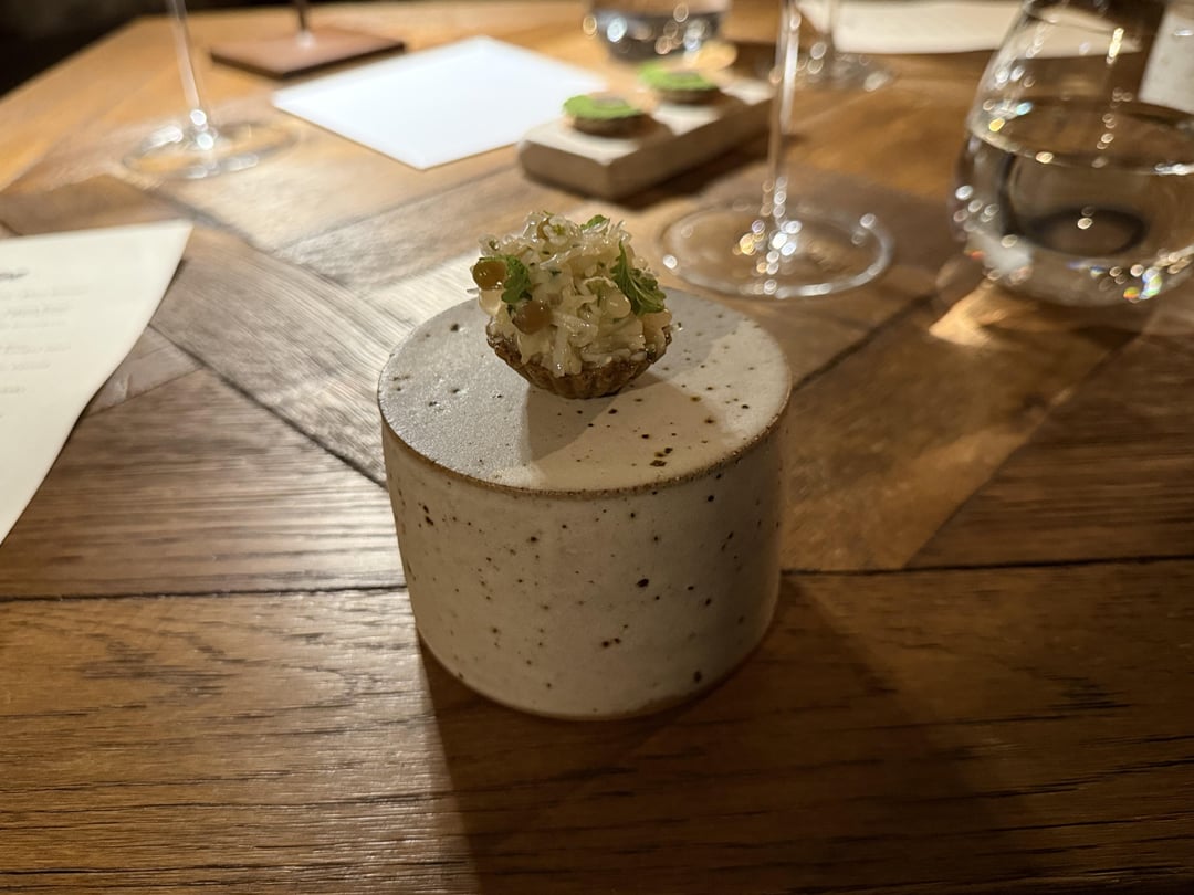 £105 for their 10 course tasting menu, £75 for the wine pairing. I thought I’d try it before it does what everywhere does after receiving a star and bump the prices up. The cost turned out to be amazing value.