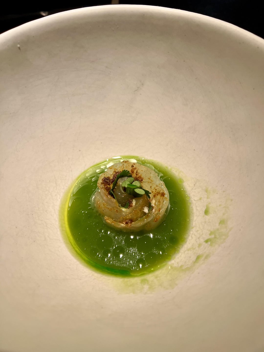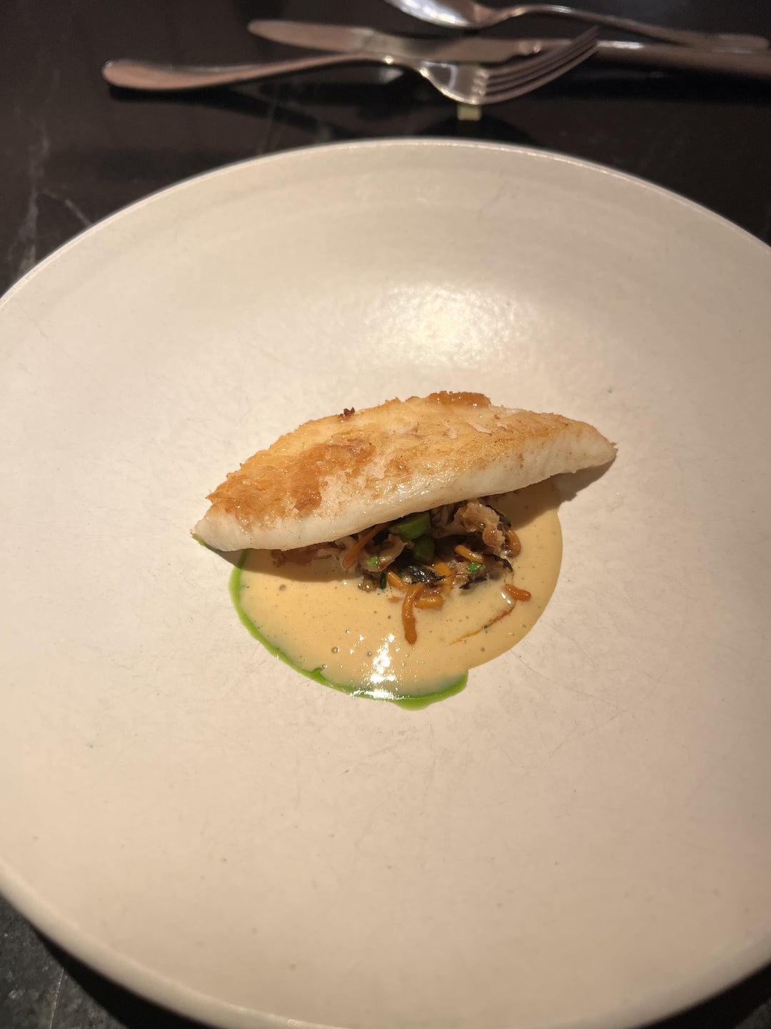 John Dory with cordials and oyster mushrooms. Solid dish, favorite course