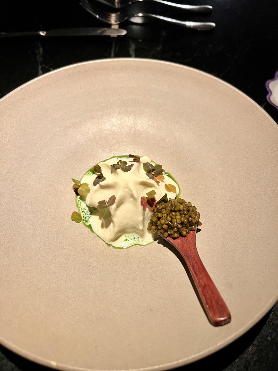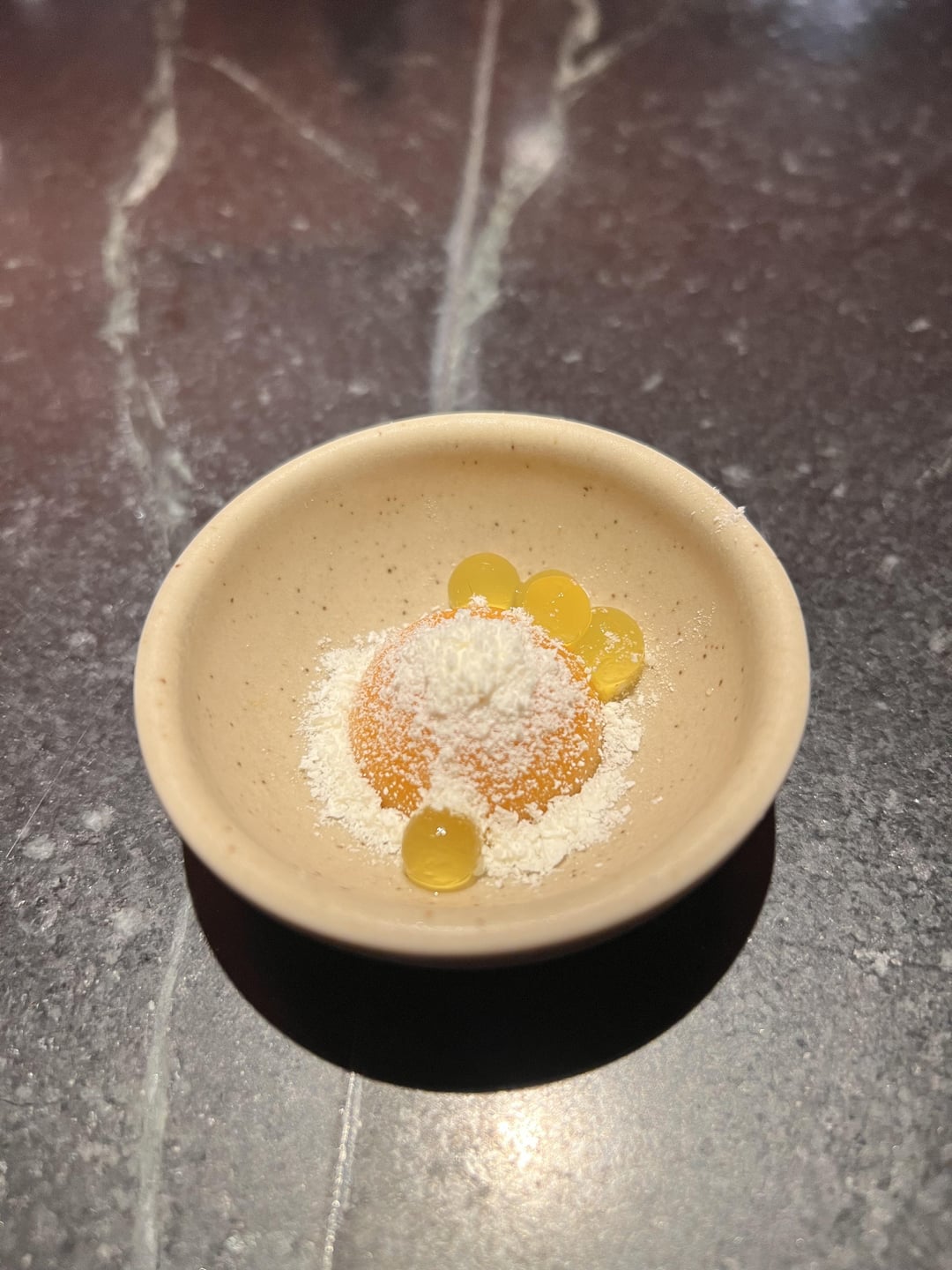 Sweet potato royal with tofu cream and golden osetra was very good. First bite faintly reminded me of the Asian ginger tofu dessert. Every single egg was firm bursting with flavor. It got lost in the tofu cream so I chose to finish each bite with a little caviar instead of mixing it.