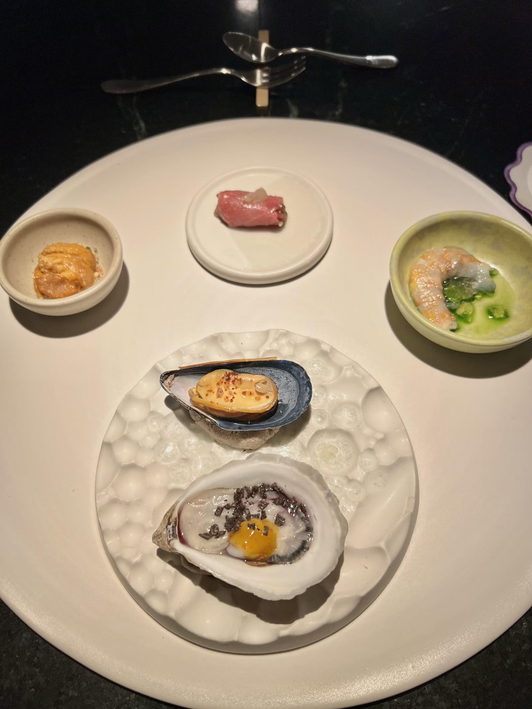 First set of courses was a great start of the meal. Favorite was the mussel. Truffle bits on the oyster smelled like that load of laundry you forgot in the washer. Uni from Maine wasn’t as clean tasting as Santa Barbara or Hokkaido.