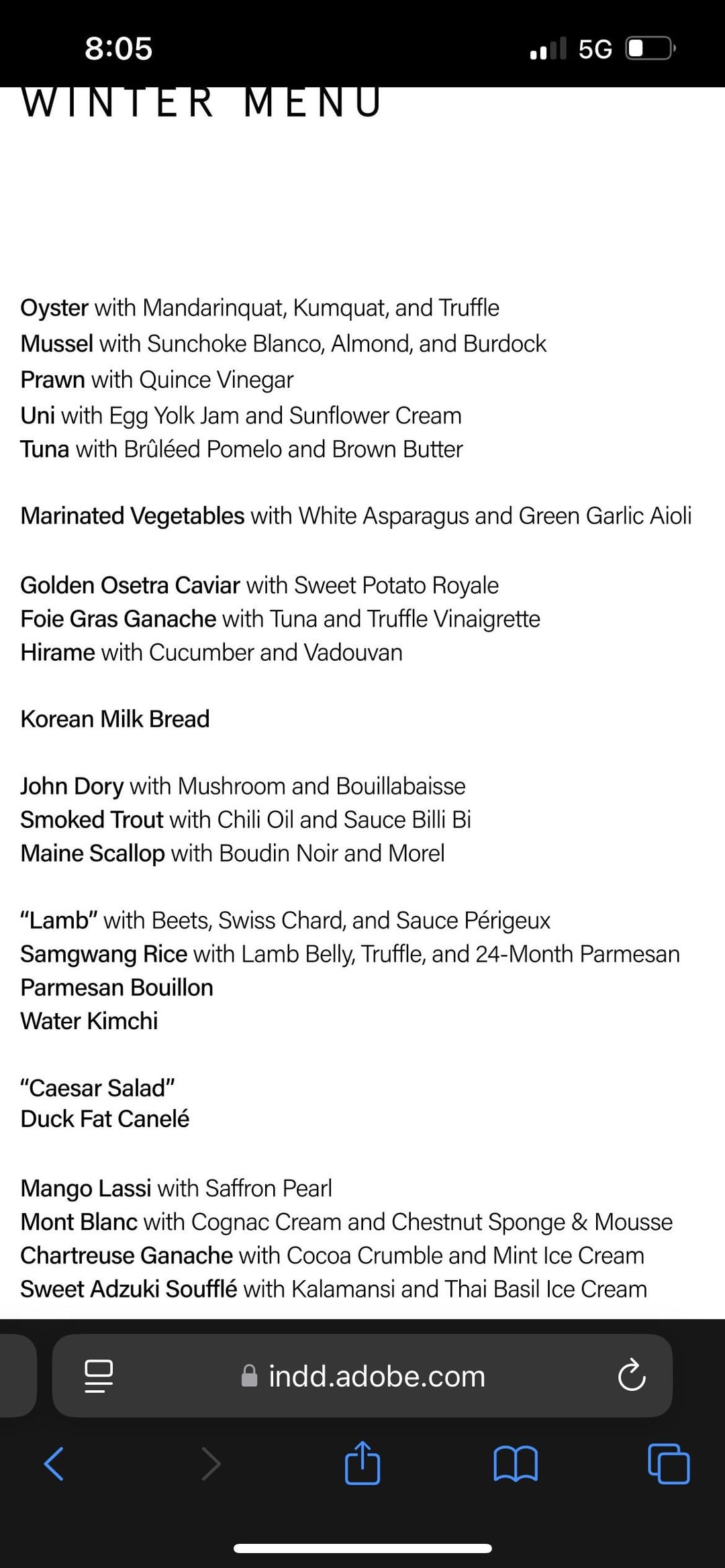 Classic French with subtle Korean influence. Seafood heavy. One of the pricier options in Philly but overall a very good meal generous on the proteins. Left full. Alcoholic and nonalcoholic cocktails were very good. They offered a non alcoholic pairing for $80-90. Would return.