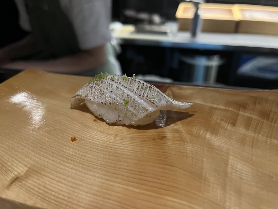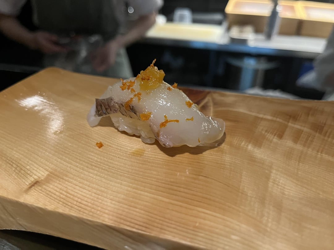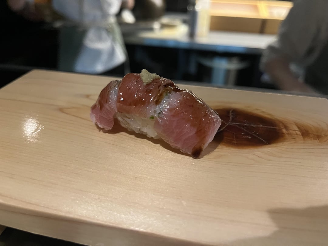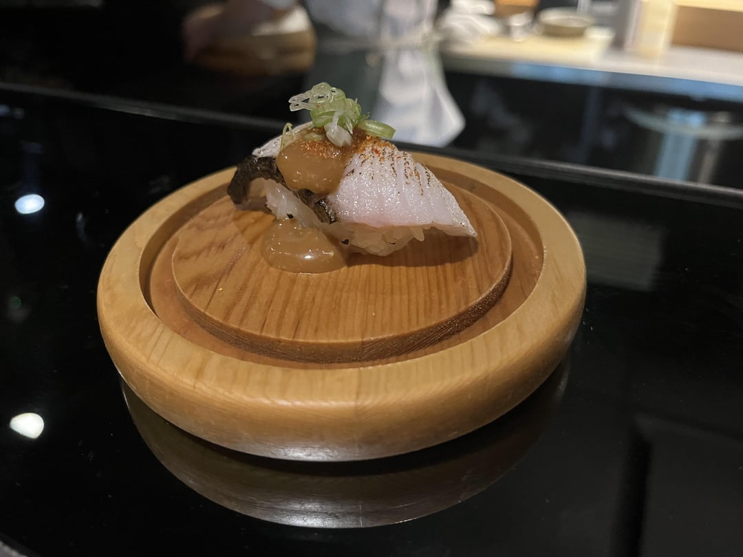 The nigiri courses were all delicious. If i had a "least" favourite it would have been the sea bream, which was more citrus forward than to my liking, but it was still really good. My absolute favourites were: the hiramasa belly (lightly torched – amazing texture and flavour), the shima aji (delicate, subtle and set off with the ginger & scallions), the spanish mackerel (delicious and made even moreso with the hint of salt) & finally the bluefin tuna otoro (rich & melt in your mouth).
