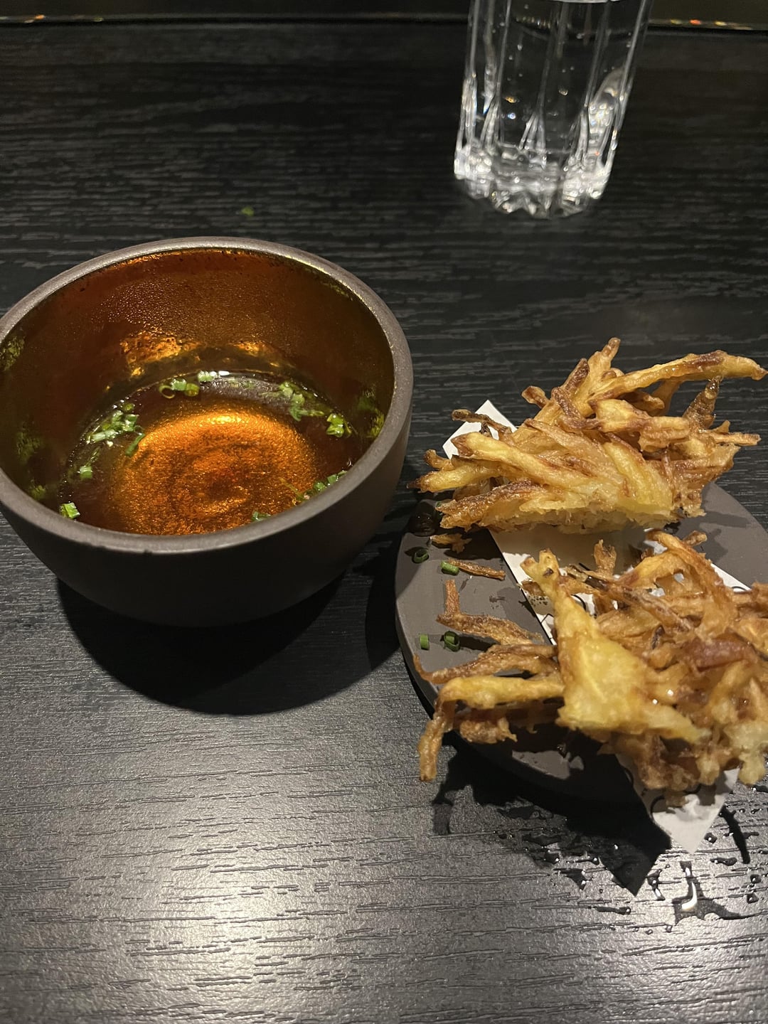 Tempura – NZ clam, sweet potato & onion kakiage, tentsuyu