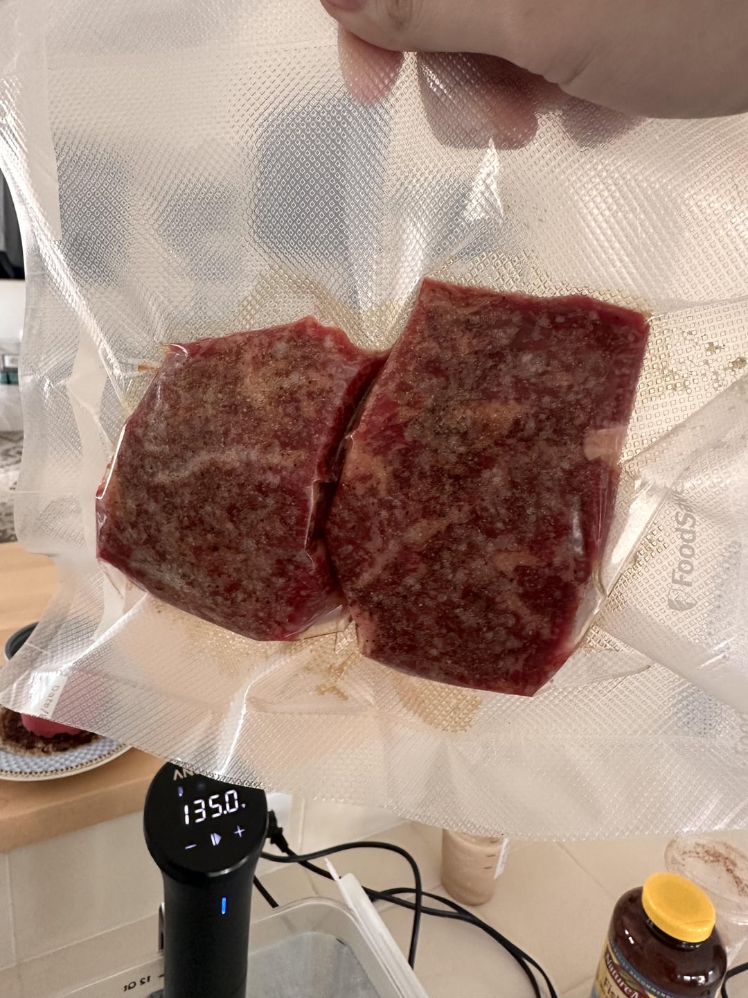 dudiez 12 months ago Looks good. For me 135 generates a too well done steak for my taste.I find 130-132 to be better because it the temperature goes up slightly after the sear and rest.