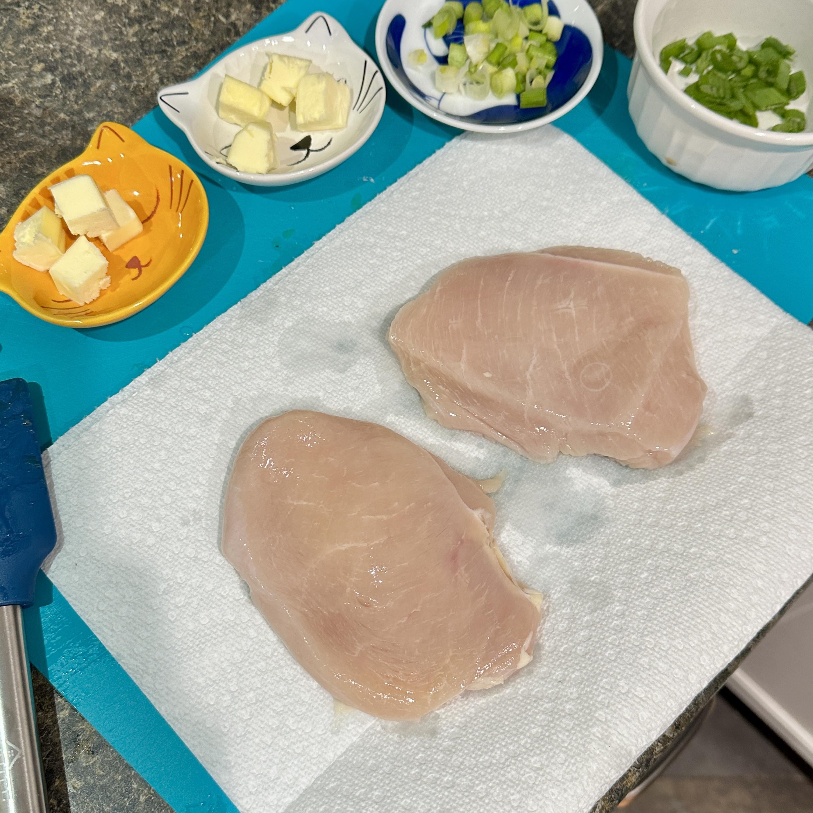 I feel like I hit the chicken cutlet jackpot 🎰! The package contained 2 perfectly proportionate cutlets; I’ve become so used to getting one small fat cutlet paired with a long skinny one that I didn’t realize such a unicorn as the perfect sized cutlet still exists!