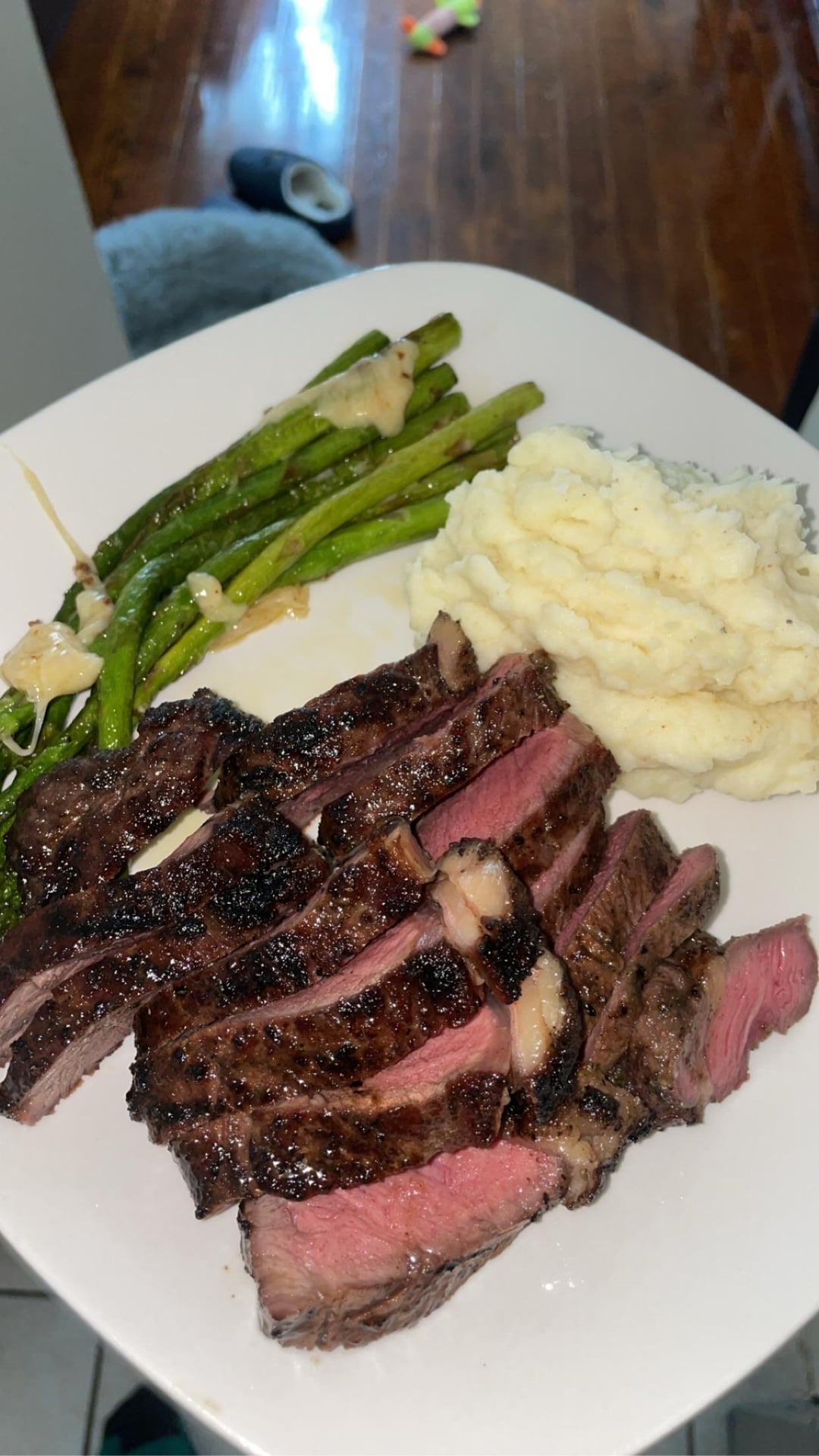 Co-worker gave me a mini grill and I am very proud of this steak dinner I made