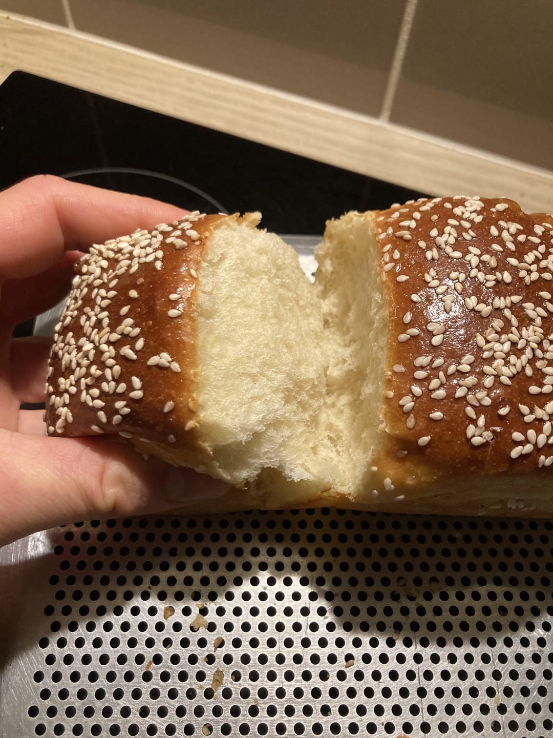 The bread is good, but the texture seems very different from the one showed in the tiktok. My crumb isn’t stringy like hers (despite 30 min of kneading in my kitchenaid). I followed the recipe and the process to a T. I used a 13% protein flour, the one I usually use for challah and brioches (which come out very stringy each time).