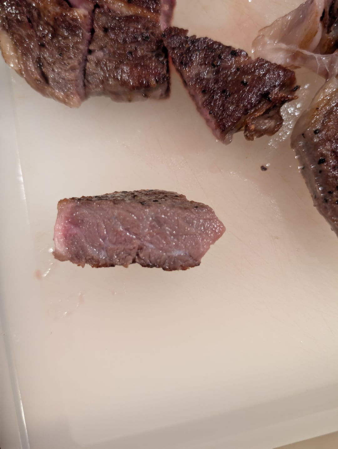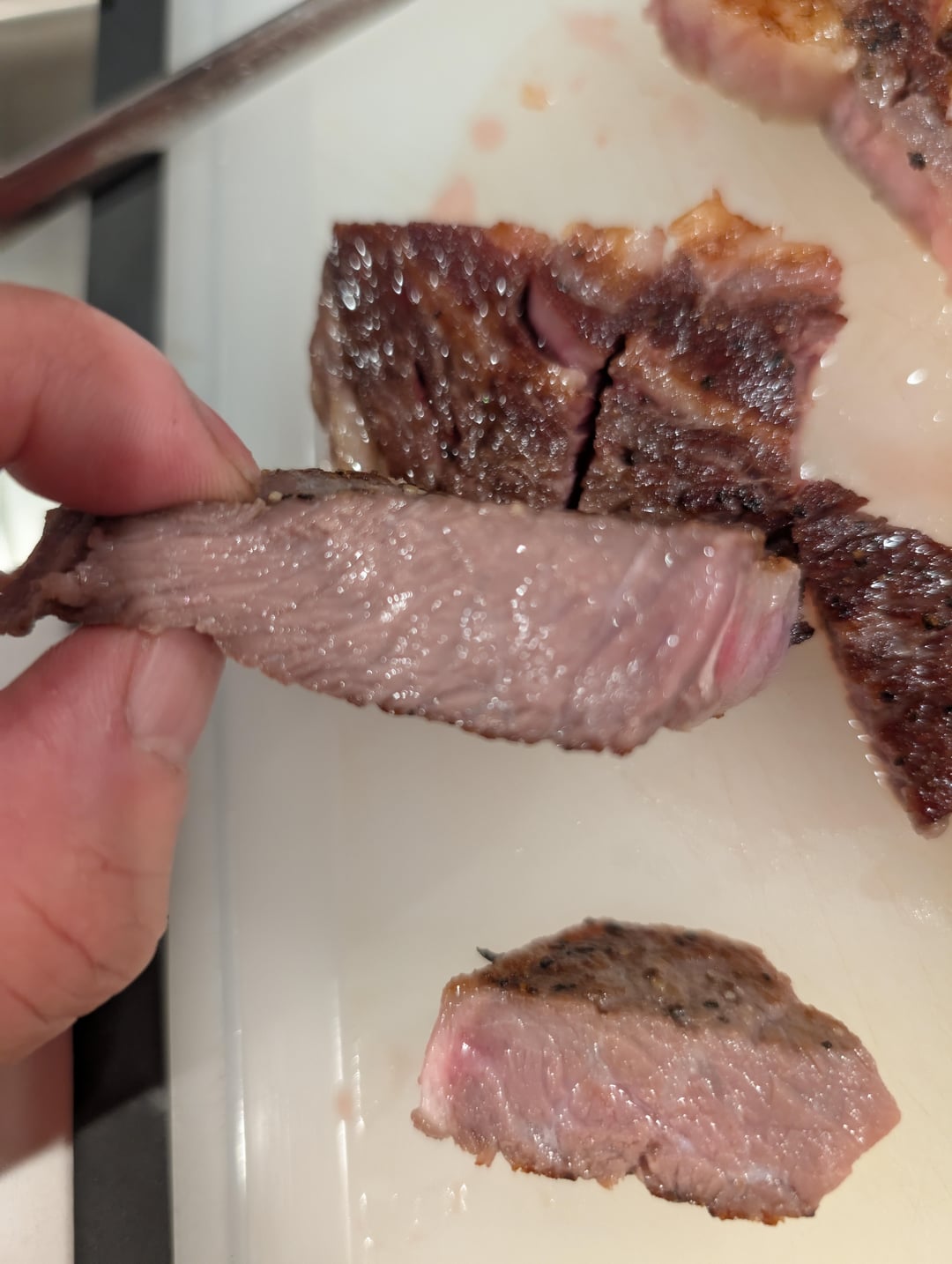 Otherwise…. Get a thicker steak, ideally, and do all of the above adjusting the time according to thickness. If you do ribeye or another fatty cut 135°F. Trust me. Otherwise if all that fails your circulation machine and temperature probe are fucking lying to you.
