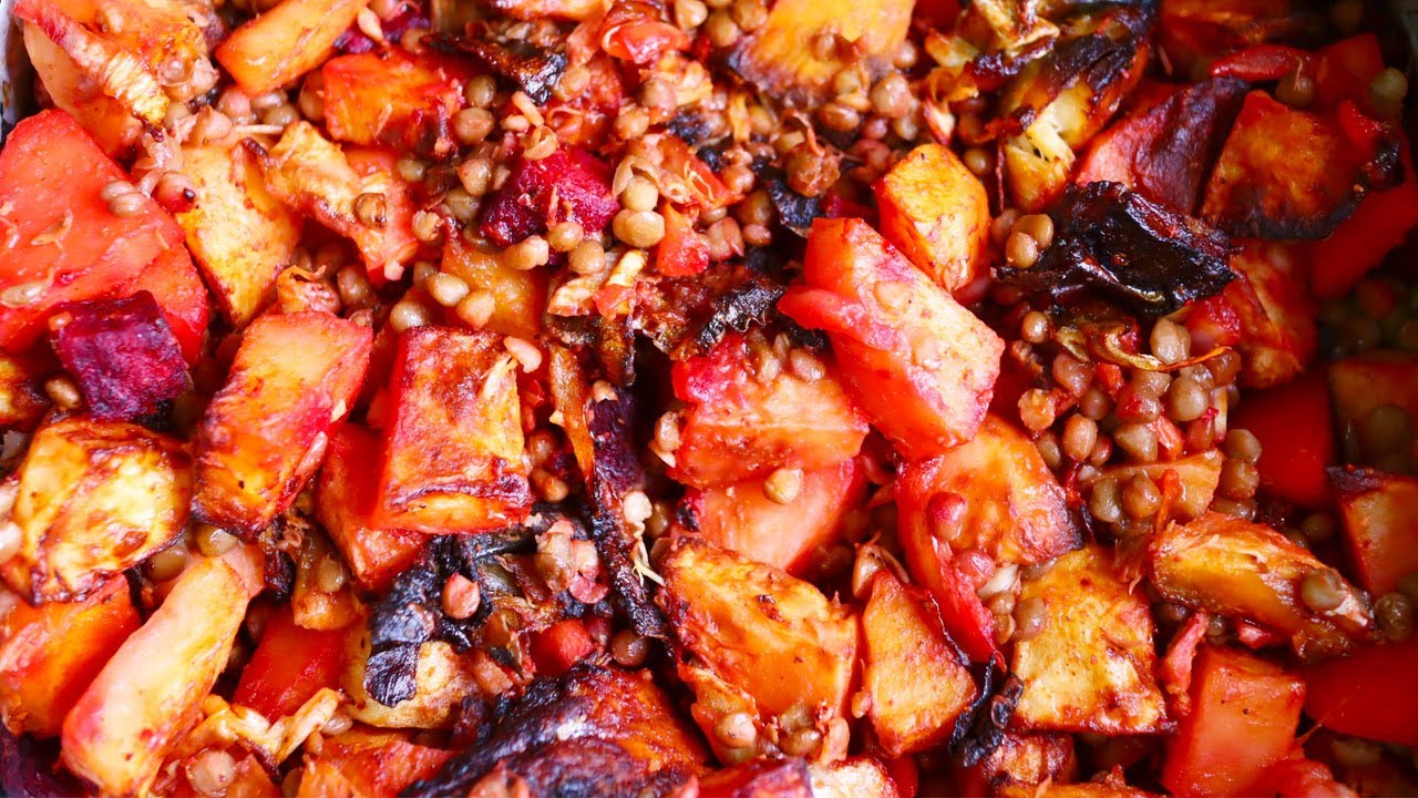 one pot Air Fryer pumpkin, potato, lentils and beetroot