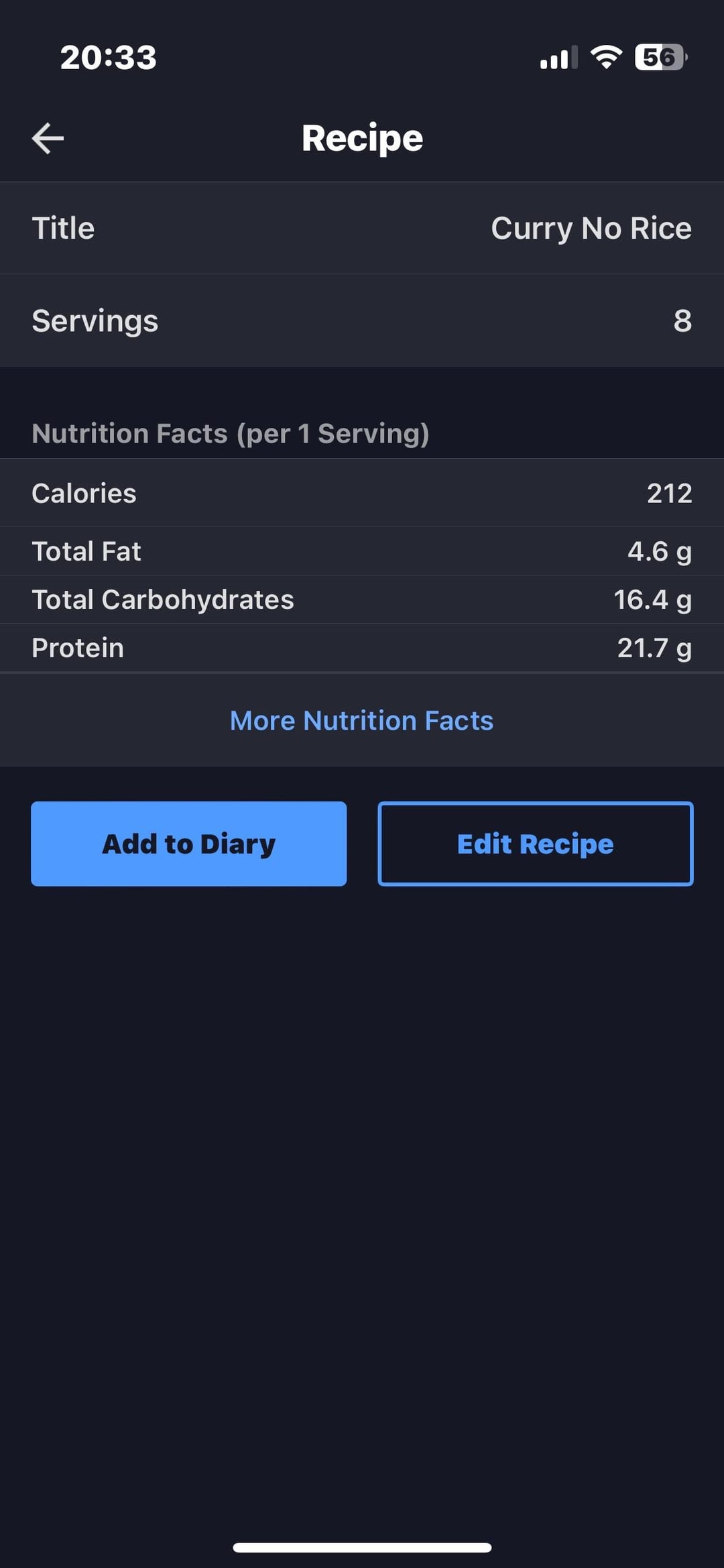 8 servings and (not including rice) only 212kcal per serving and 22g protein.