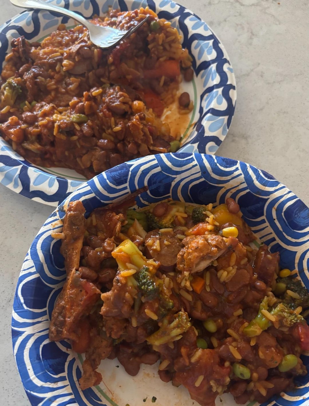 * My mother’s “>!Seafood rice!<” (>!Rice with a small amount of mixed veggies, small amount of crab meat, relatively large amount of sausage!<)