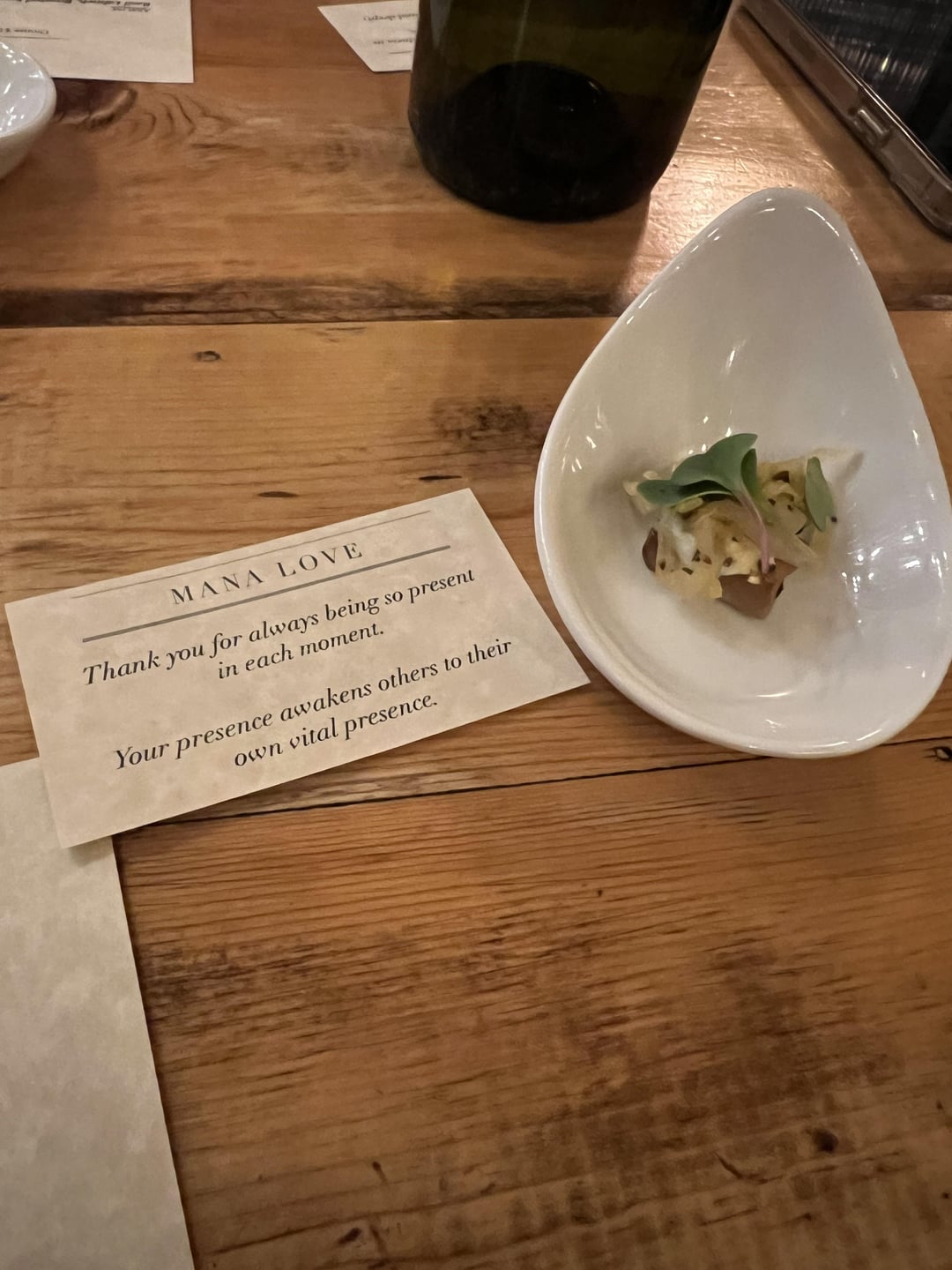 Went to MANA this past weekend for the last week of their Winter menu. We did 6 course with wine pairing. Great ambiance, service, wine pairing, all spectacular