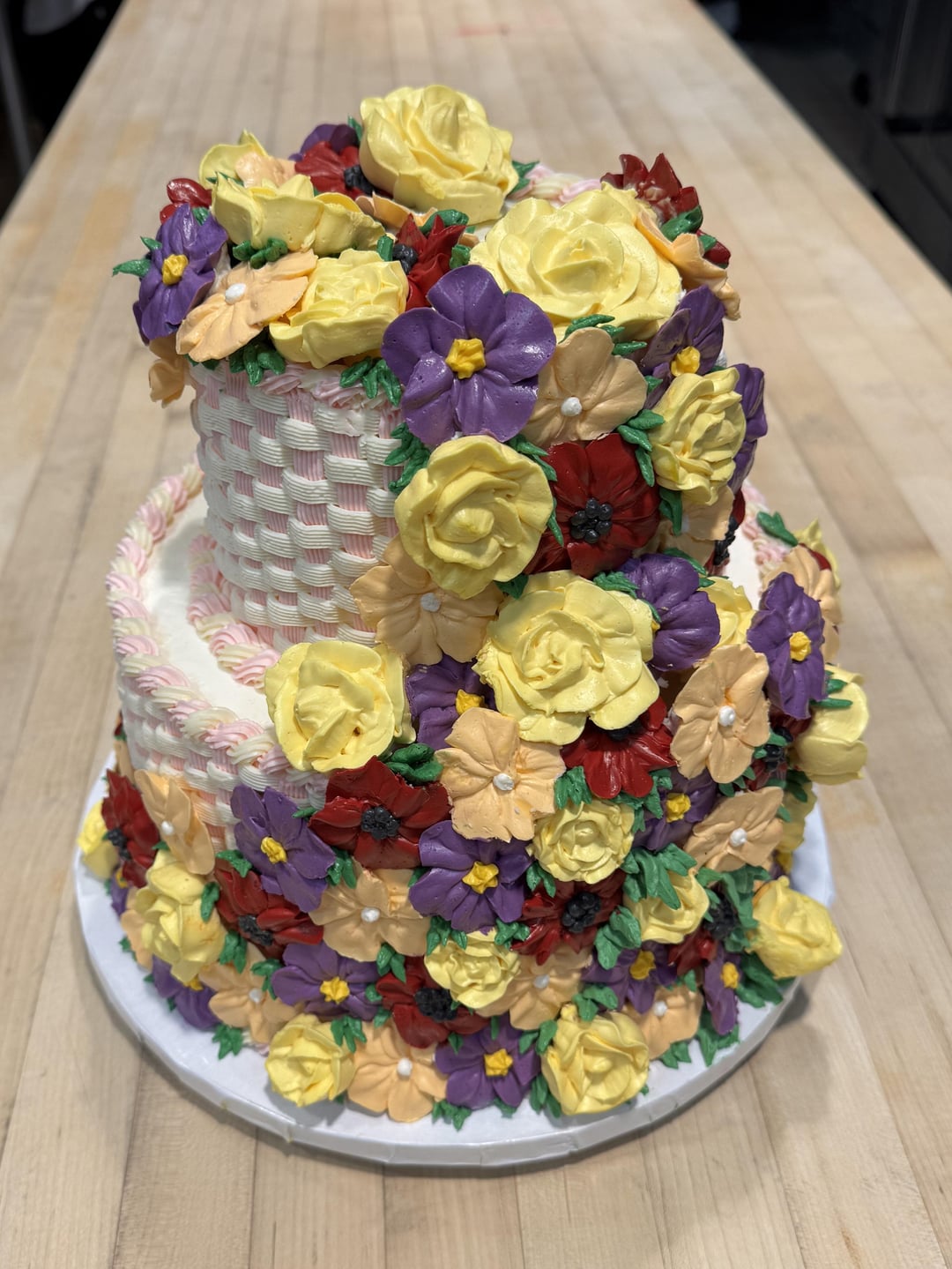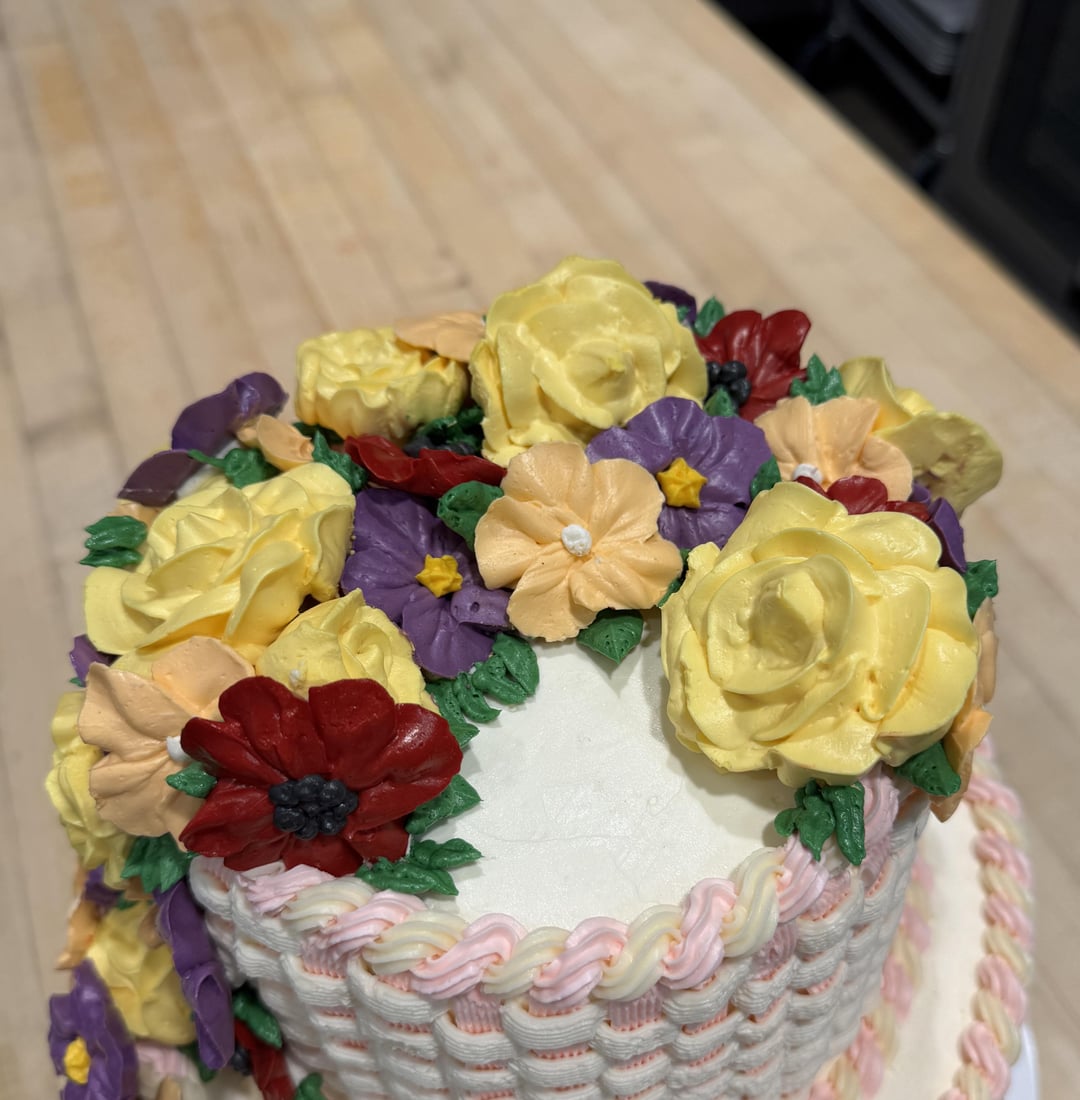 Omg??!! That’s such a gorgeous cake I can’t even imagine how long it took! The flowers, the weaving, the frosting spirals, they all look amazing!!