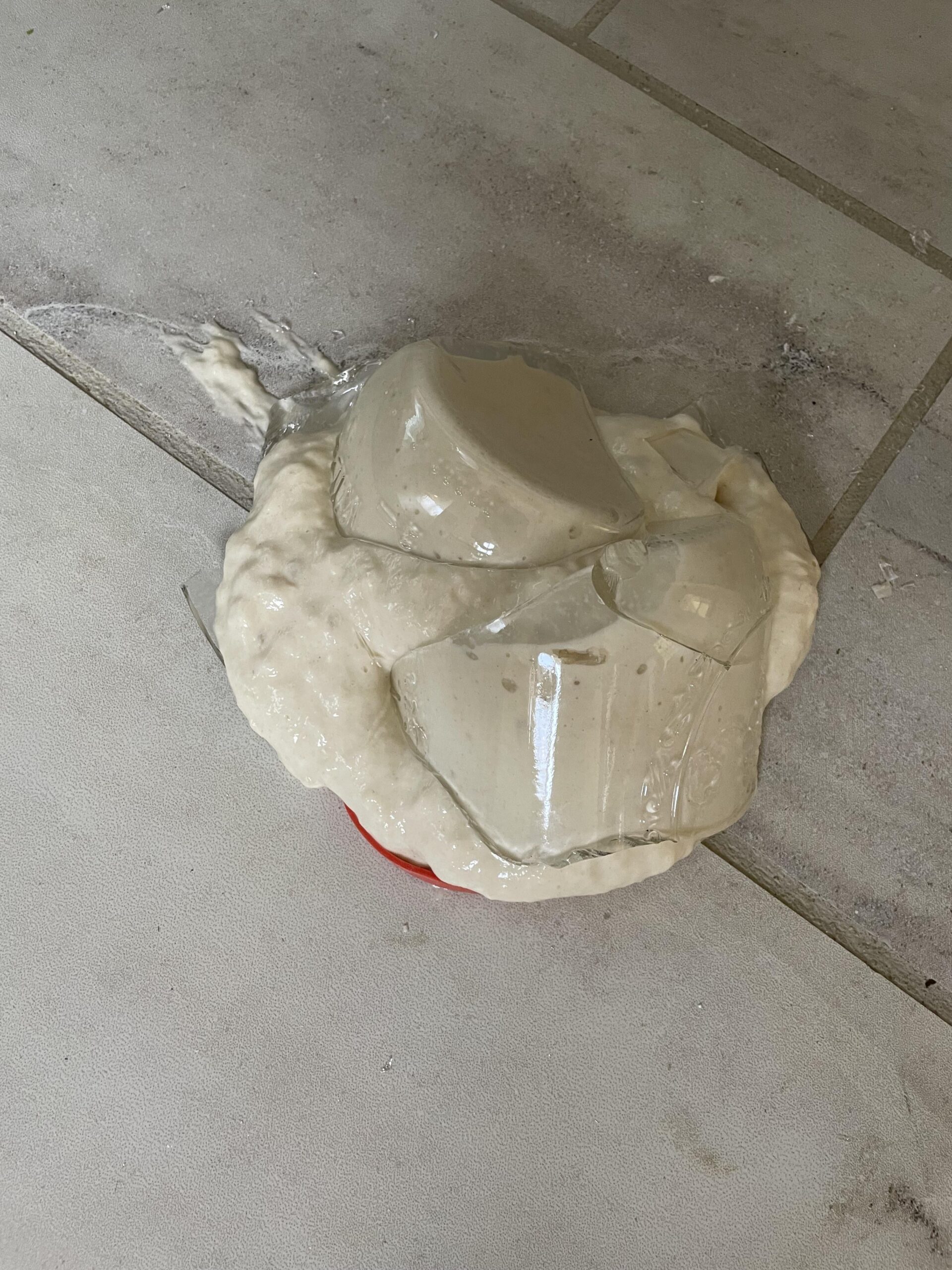 30. Oof. Had it been a plastic jar going splat, I would’ve told you to scoop some off the top and continue the culture! However, this here is free glass in your bread, so please DON’T.