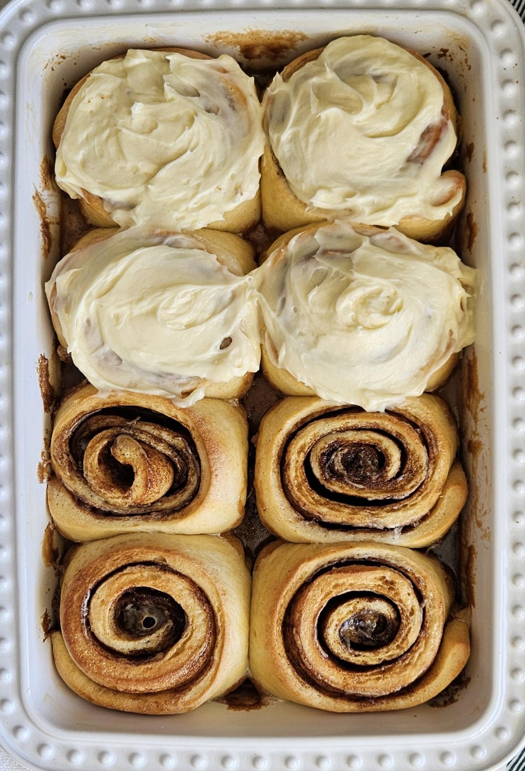 For some reason I love them so much more visually unfrosted. I tend to make my frosting a little thinner so it drops down into the grooves and I can still see the rings, but none of my cinnamon rolls have ever been this perfect to showcase.