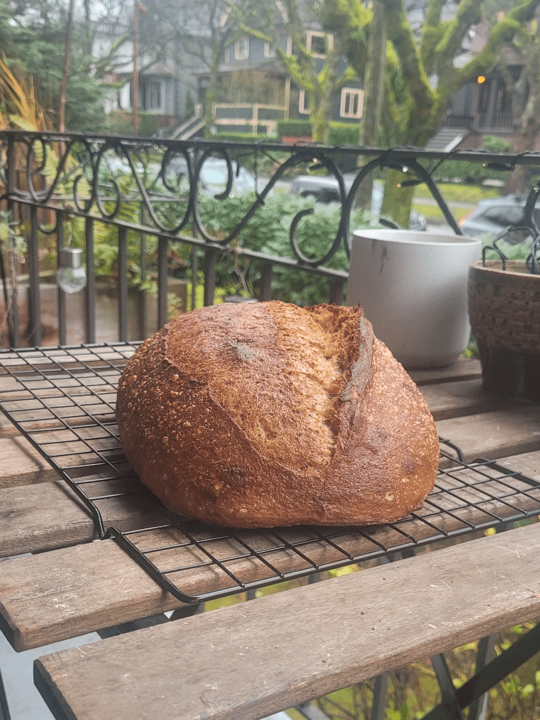 I've been adjusting this recipe on and off, and adding a rye levain really added some amazing flavour while still maintaining a nicely open crumb for such a high percentage whole grain loaf