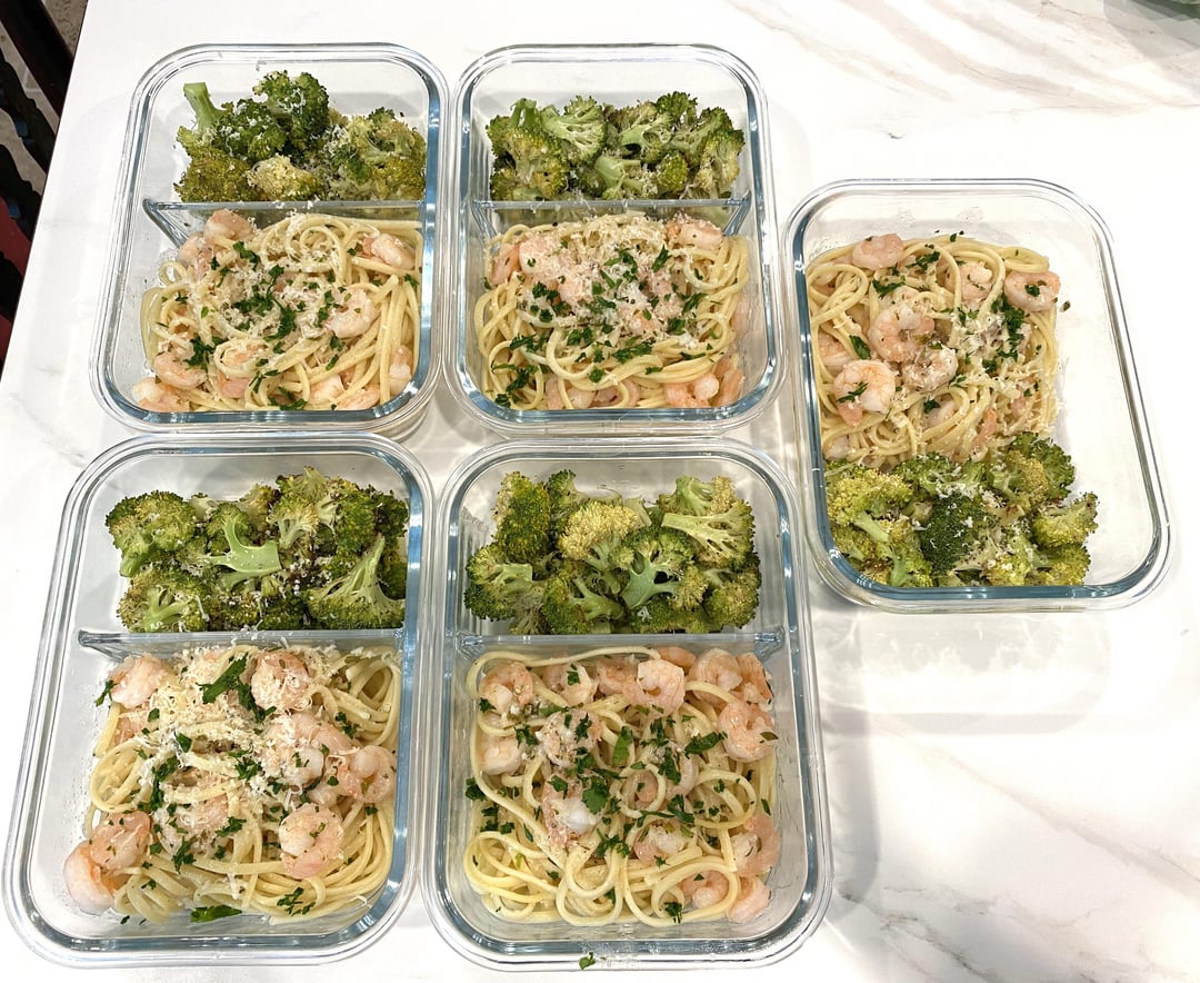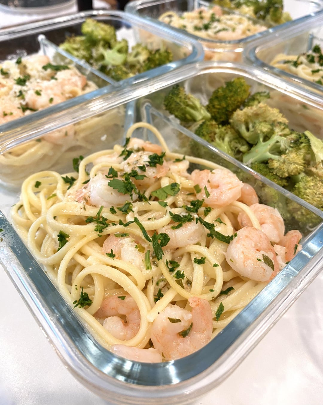 hostility_kitty 8 months ago Ingredients:-1 lb Linguine pasta-Medium shrimp (deveined and peeled)-3/4 cup Parmesan cheese-6 garlic gloves-1 cup white wine-1 lemon-1/2 cup butter-Parsley-Oregano-Salt-Pepper-Broccoli
