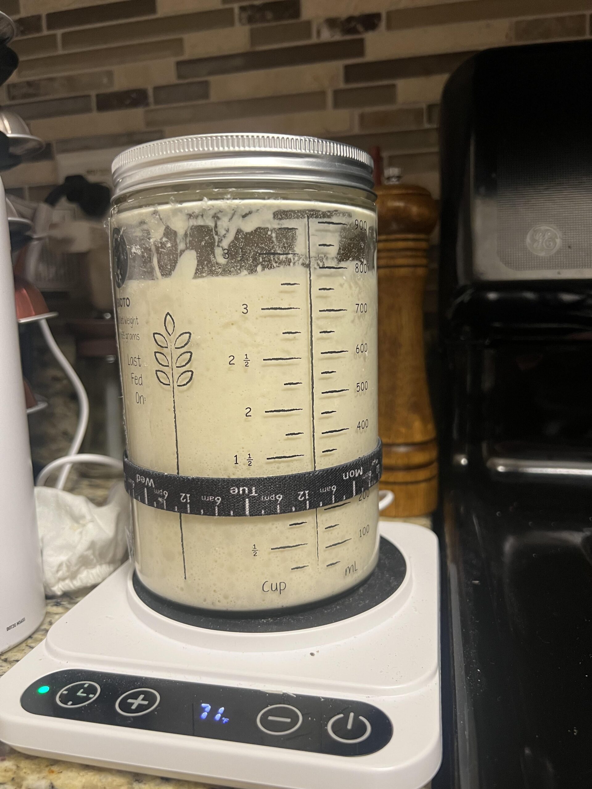 I love this for you!! I started mine in the midst of a serious cold spell and had almost no activity for like two weeks. I started warming the water I used and setting my jar in a bowl of water that was around 105°-110° right after feeding and it made a world of difference!