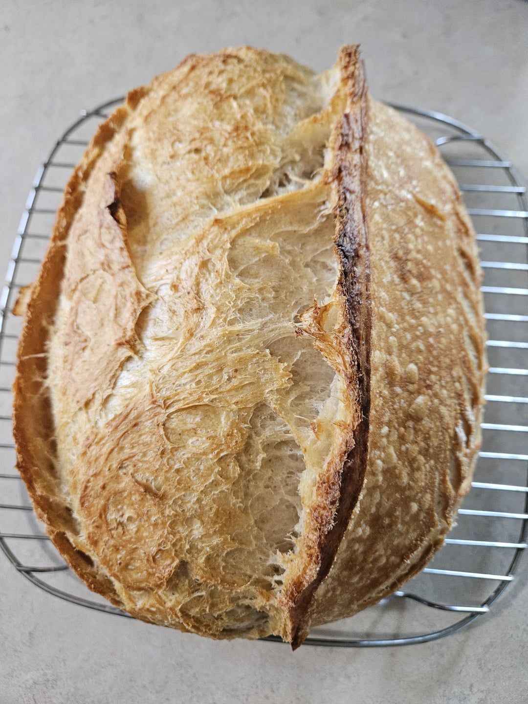 I almost lost hope because I thought she had overproofed.. but she’s beautiful!by kay-b808 1 Comment AutoModerator 12 months ago **Hello kay-b808,****FRIENDLY [RULE 5](https://www.reddit.com/r/Sourdough/wiki/sourdoughrules/) BOT HERE – GENERAL REMINDER**.**Sourdough Bake photos** are removed if **Rule 5** isn’t met (**include ingredients & process**). If yours is removed, we confirm by modmail.**Need help or feedback?** Be clear & specific, include a crumbshot. Read [ Rule 5 FAQ/TIPS & TRICKS](https://www.reddit.com/r/Sourdough/wiki/sourdoughrules/) 🙂 .***Still have questions? [Modmail us :-)](https://www.reddit.com/message/compose?to=/r/Sourdough). – #**[READING CRUMB GUIDE ](https://www.reddit.com/r/Sourdough/wiki/reading_crumb/)** [Wiki index](https://www.reddit.com/r/Sourdough/wiki/index/), & [FAQ Beginner starter guide](https://www.reddit.com/r/Sourdough/s/gnqFg7osBO)*I am a bot, and this action was performed automatically. Please [contact the moderators of this subreddit](/message/compose/?to=/r/Sourdough) if you have any questions or concerns.*Write A CommentYou must be logged in to post a comment.