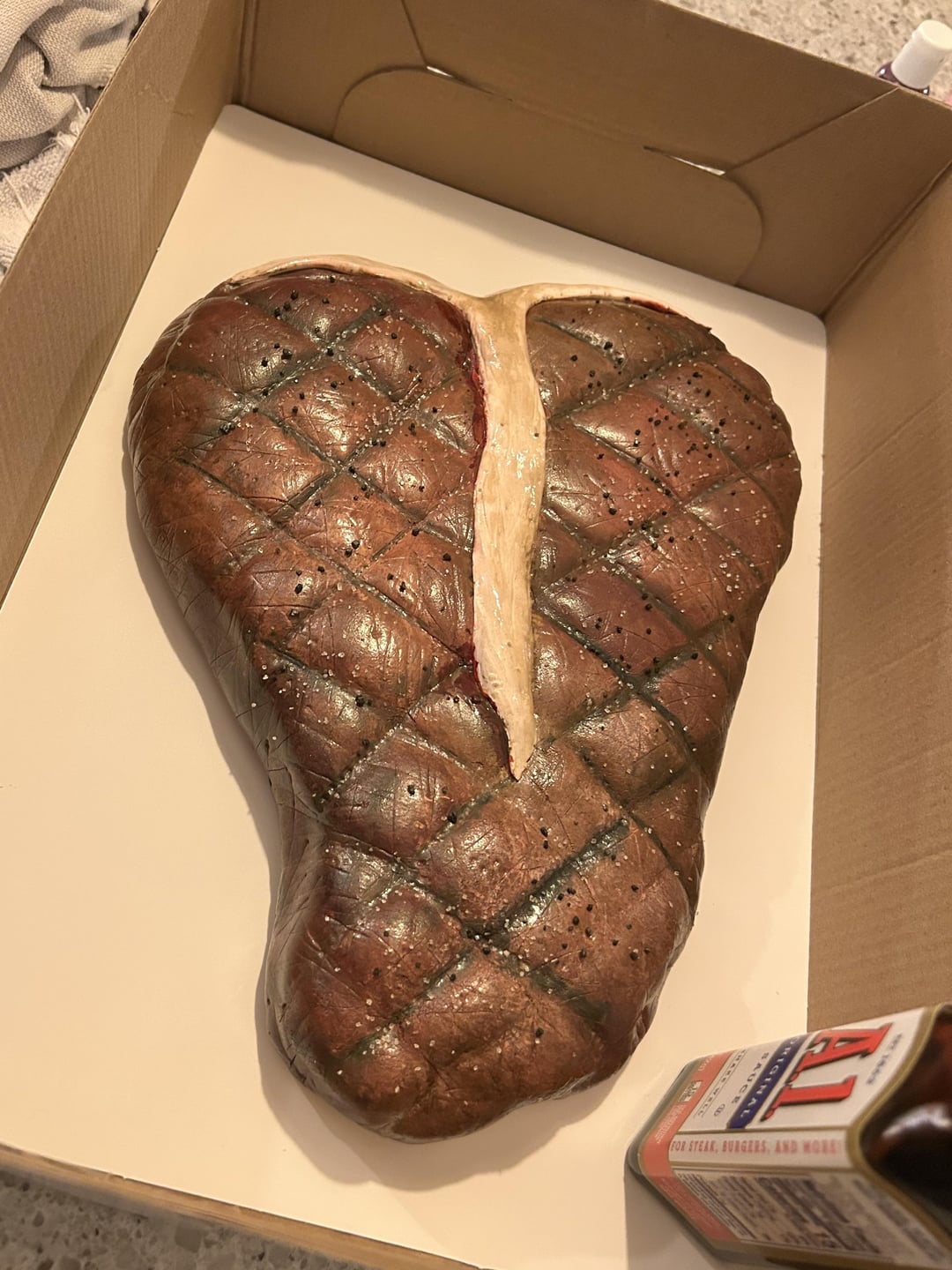 All her husband wanted for his Birthday this year was a "real" cake (all their kids have severe food allergies). I said sure! I love birthday cakes! A classic birthday cake no problem! But no, the catch was he wanted a steak cake………