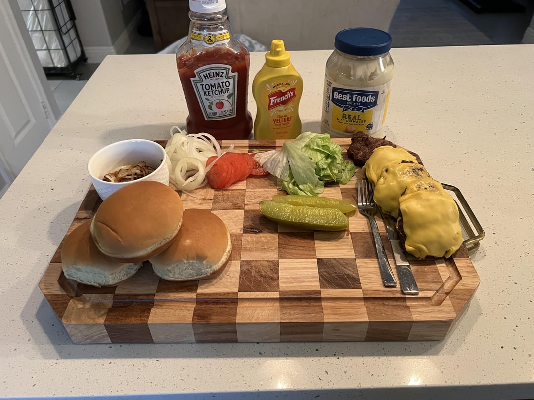 Dude. I fucks with the burger board! Gotta prep all the innards and line them up, ready to go. Enjoy, home skillet!
