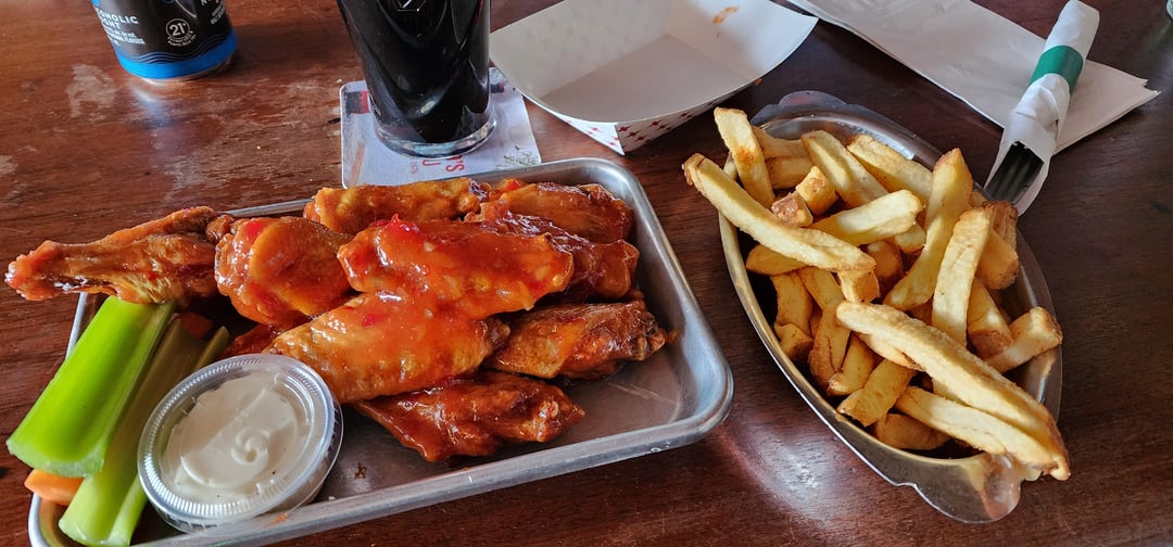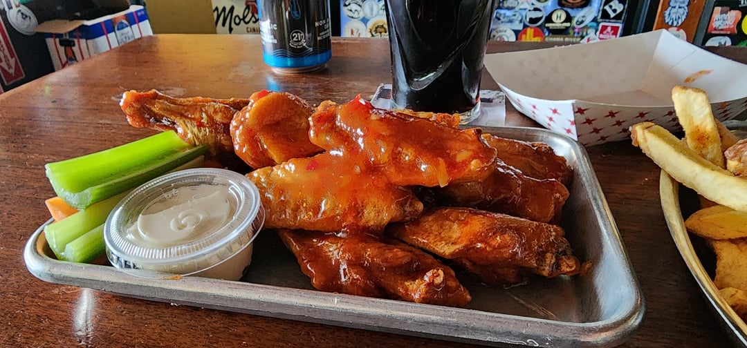 At Gene Mccarthys in Buffalos old first Ward. Wing sauce was Thai Chili Garlic, an under the radar excellent option here.