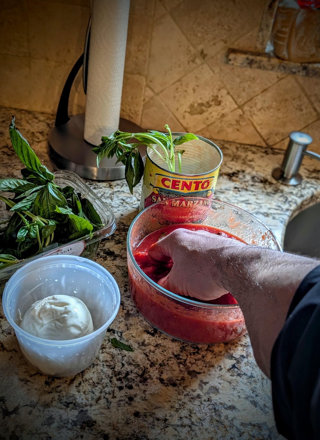 Hand crushed San Marzano tomatoes and homemade fresh mozzarella.