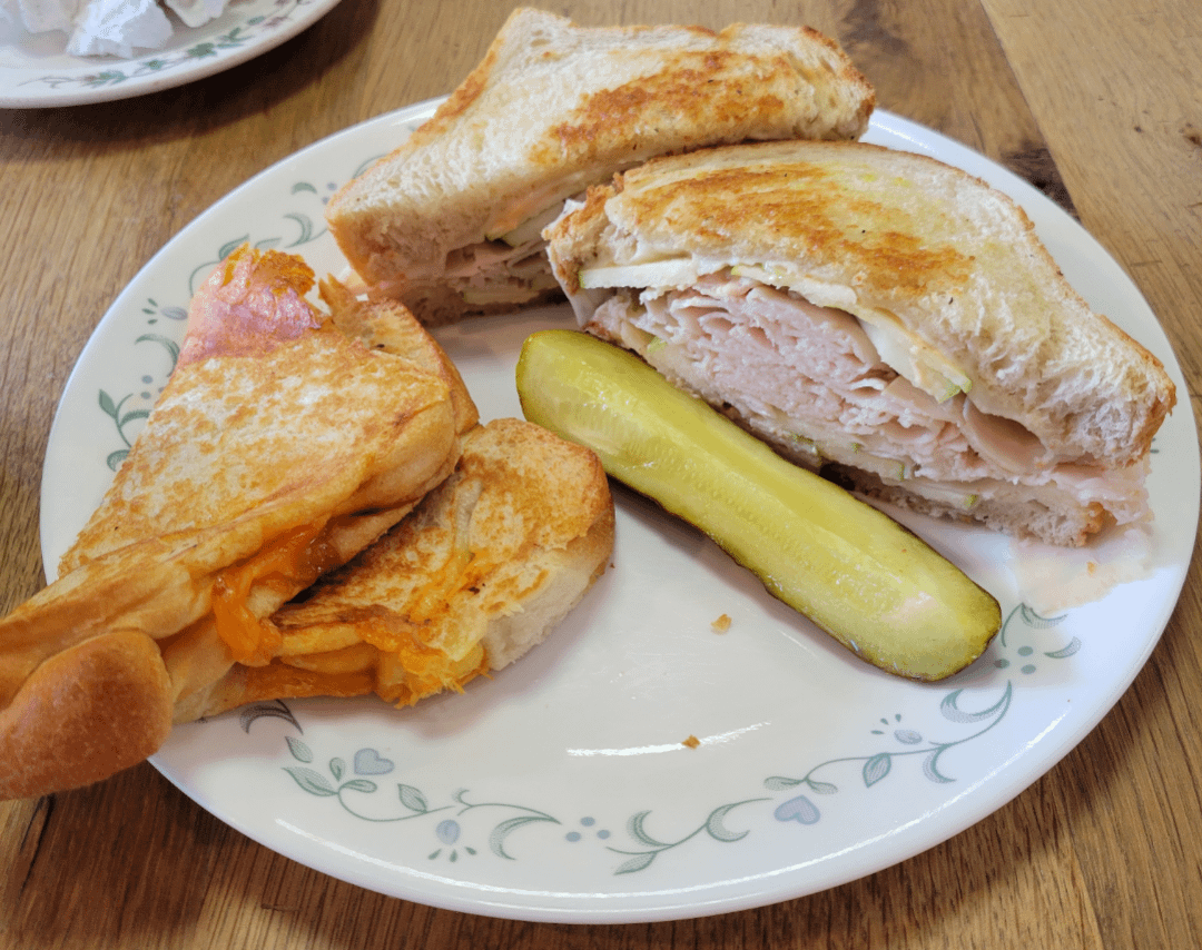 Turkey, chipotle mayo, green apple, and sliced provolone on rosemary bakery bread. Served cold.