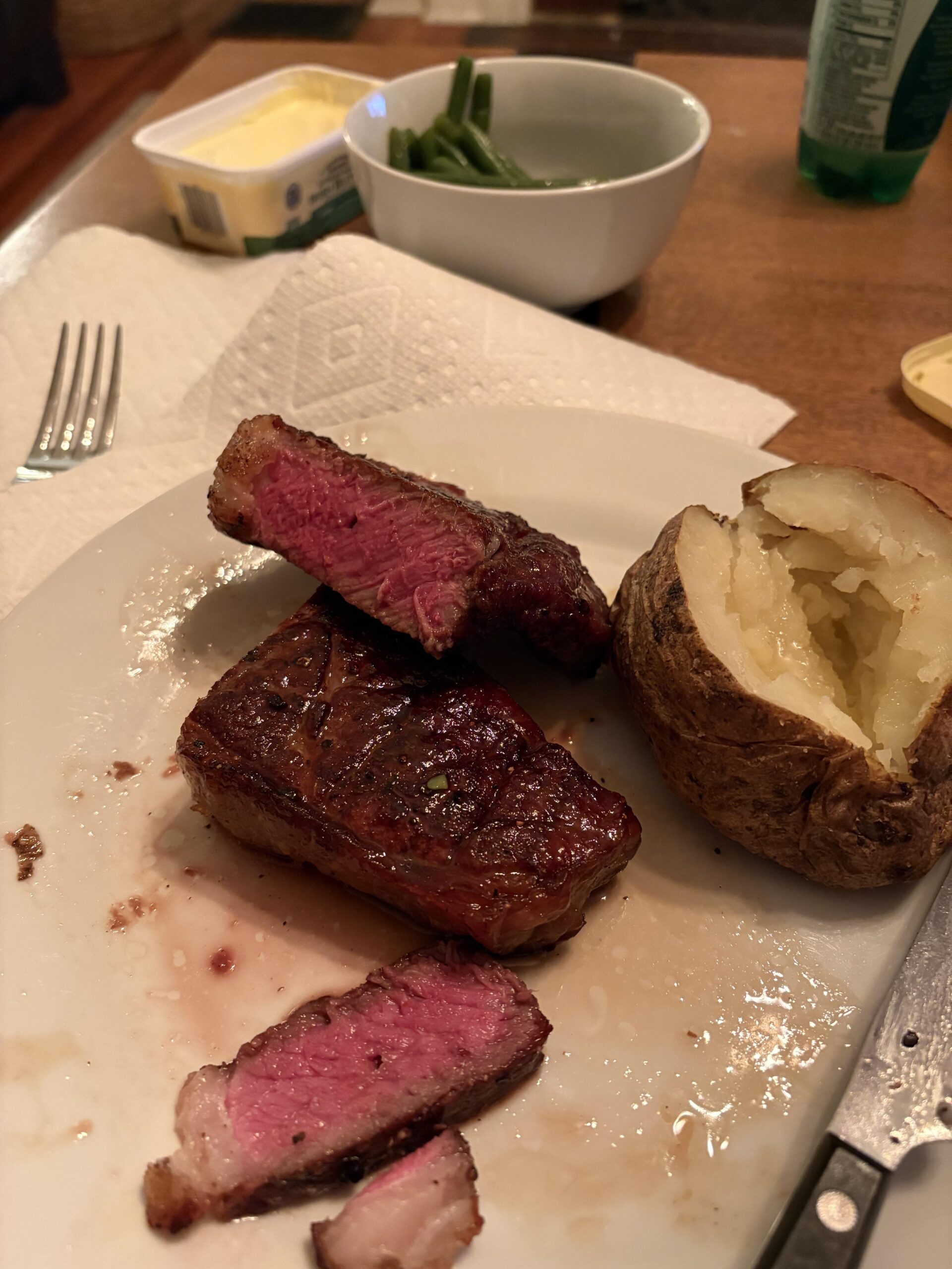 You need a lot more butter and salt and paper on that tater…. But the steak looks delicious too!