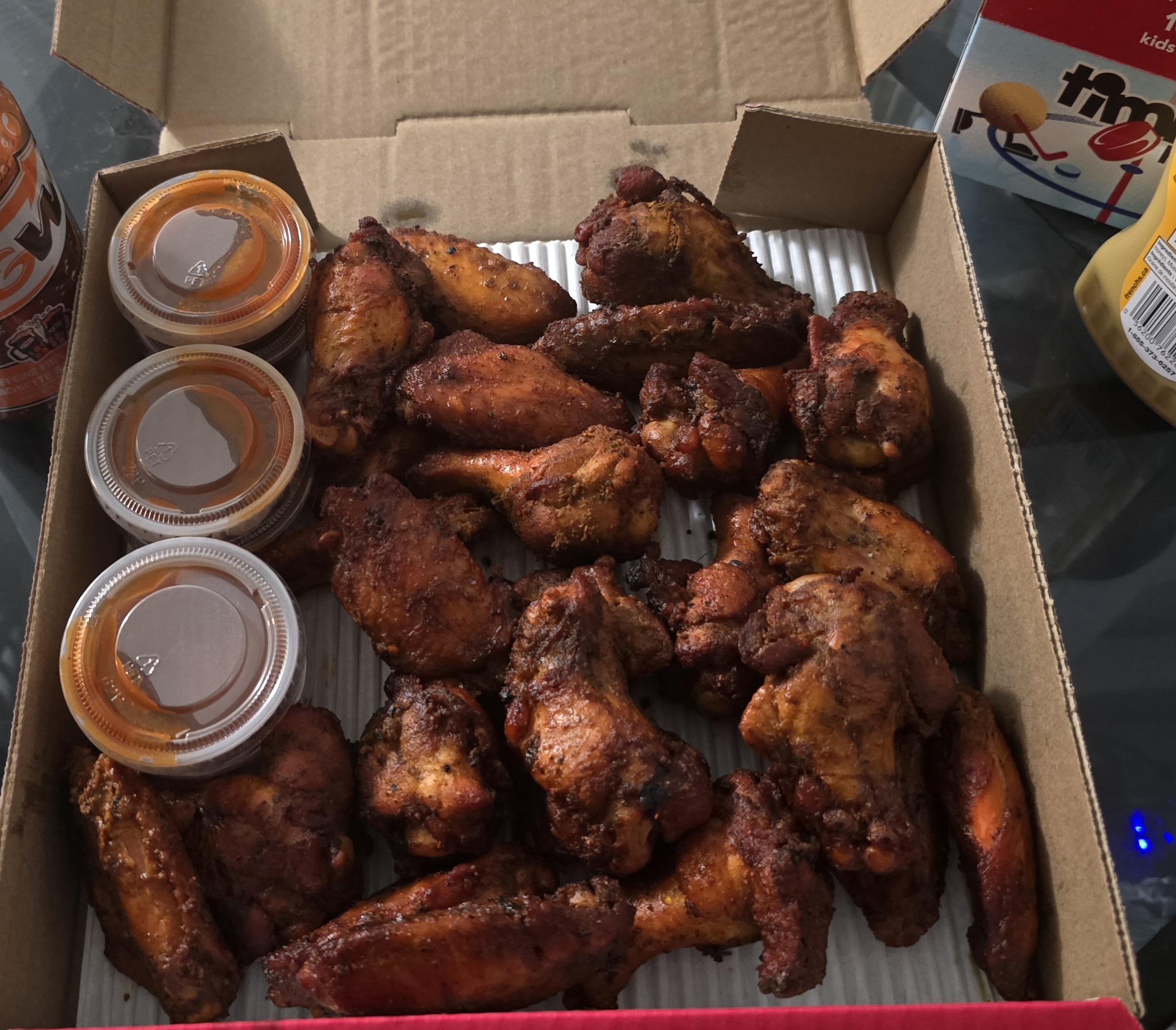 It was a buy 1 get 1 deal so I ordered two 12 piece wings and they also sent 6 complimentary dips with it. The meat was succulent and the flavor was nice.