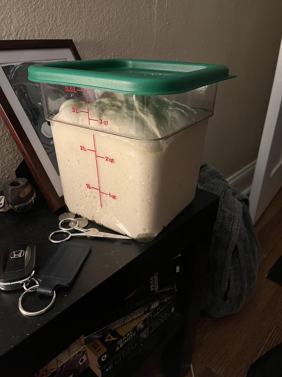 Anyone ever see a glass container like that? I do everything possible to keep as much plastic out of my cooking process but I really like the idea of having a straight sided container to gauge rise.