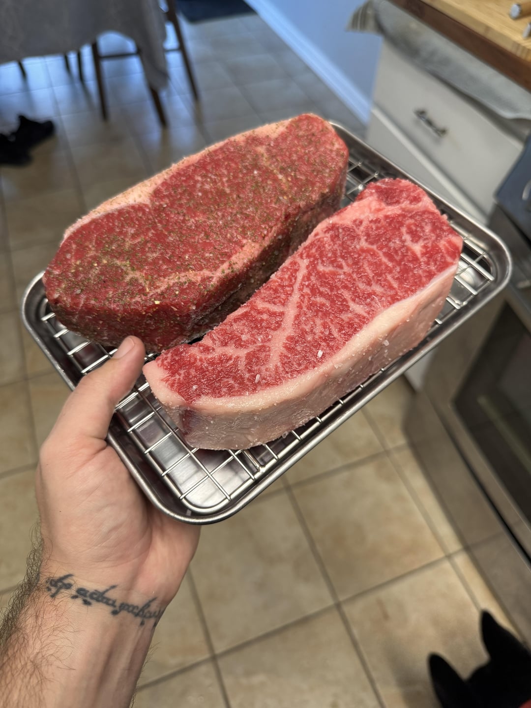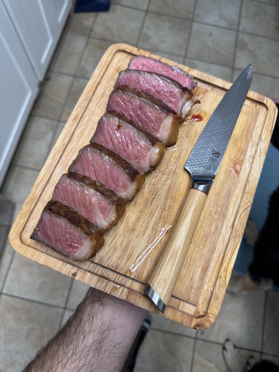 Sous vide for an hour at 115f. Seared in tallow, final temp 130f.by MrOsterhagen 5 Comments Careful_Plankton_929 12 months ago It’s beautiful 🥹 External-Body3187 12 months ago Work of art TCRRax22 12 months ago Just give me moment 🥹 showerfapper 12 months ago Marrrblous Jordan3Tears 12 months ago Fucking finally. Just a pic of a nice ass steak. None of this “my sister’s father’s son says my steak is too rare, what do you think?” bullshitWrite A CommentYou must be logged in to post a comment.