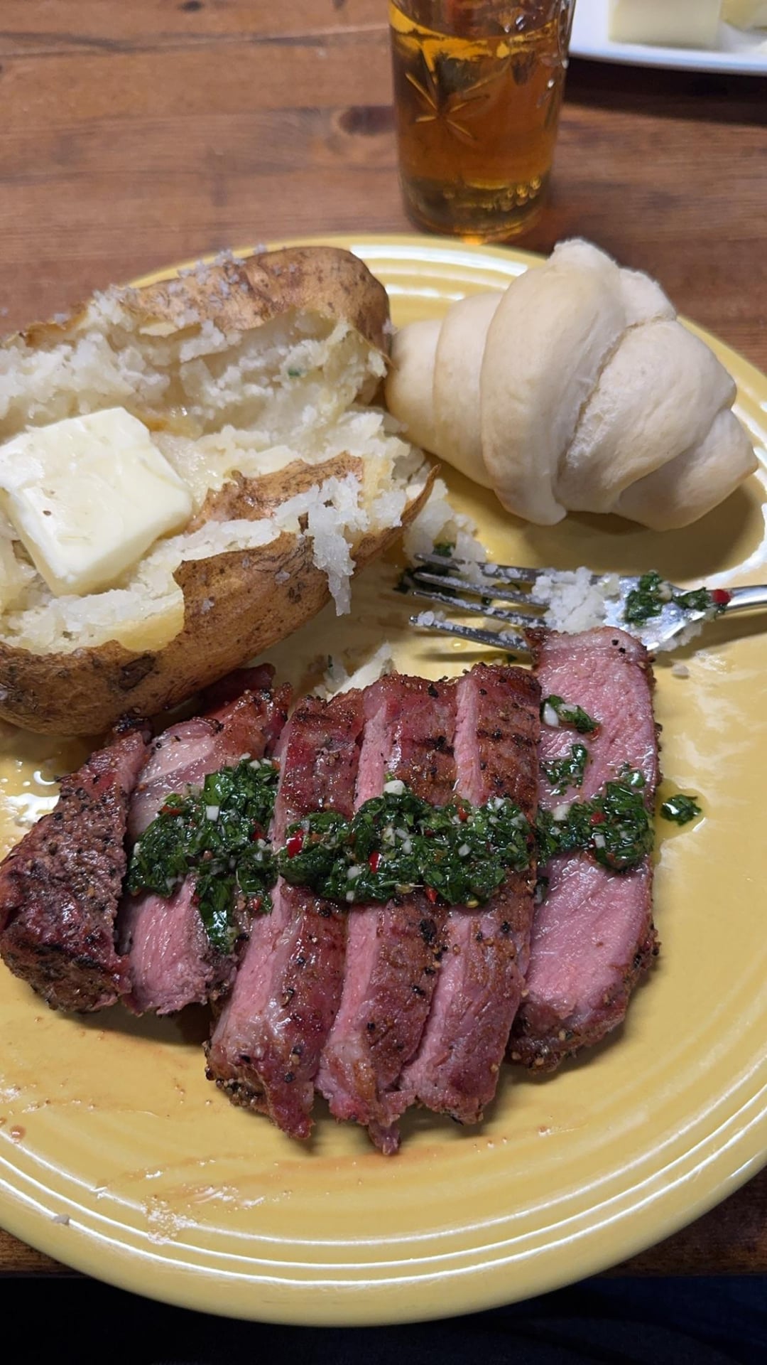 Steak looks decent but did the albino pillsbury croissant even make it into the oven?