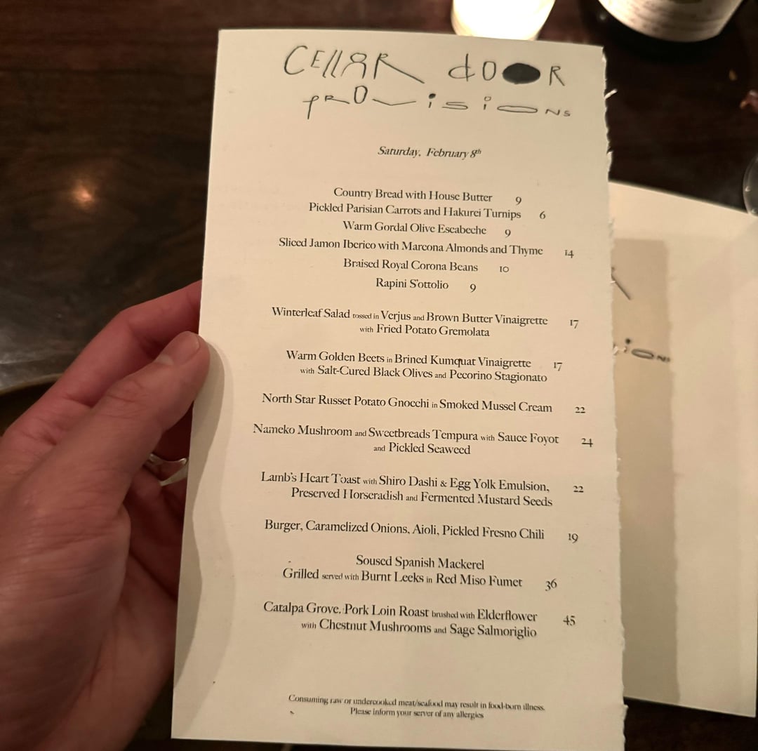 I’ve been going to Cellar Door Provisions for a few years now, but stopped going as often after they remodeled and re-concepted. I went the other night for the first time in a few years and I had such a lovely experience.