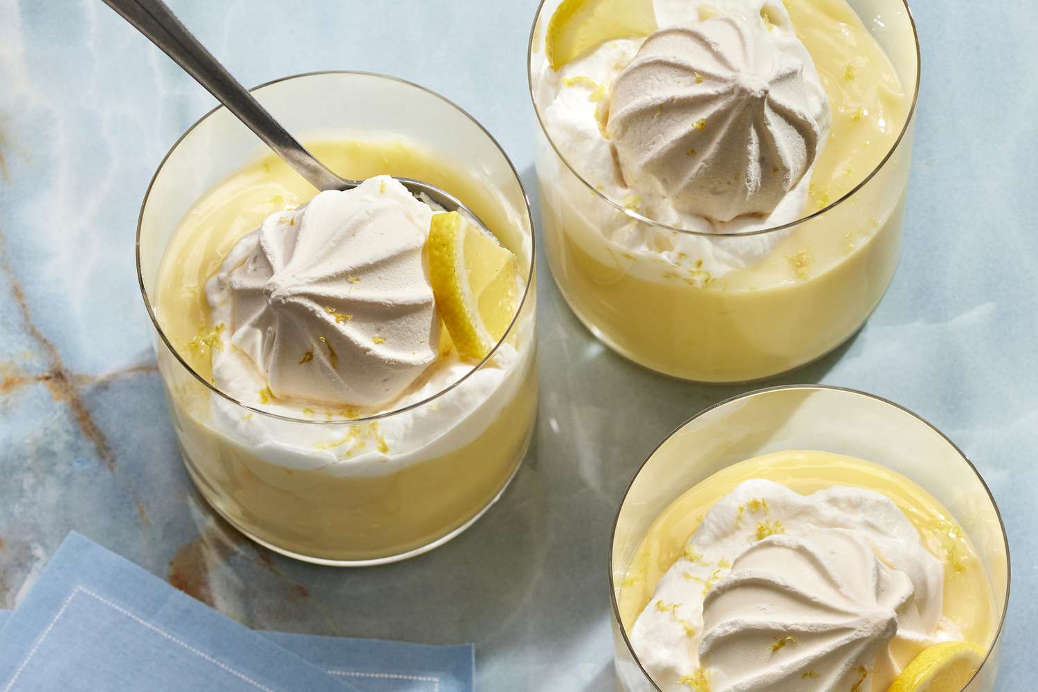 You’ll be pleasantly surprised how easy it is to make this lemon pudding recipe. Technically it’s a one-bowl dessert since you mix the pudding ingredients in the same saucepan it cooks in. Combining the custard ingredients before applying heat allows everything to incorporate evenly and minimizes curdling and lumps. That said, straining the custard after cooking is a non-negotiable for a smooth, creamy pudding. Enjoy this ray of sunshine after it sets with a luscious dollop of whipped cream and delicate store-bought meringue kisses.