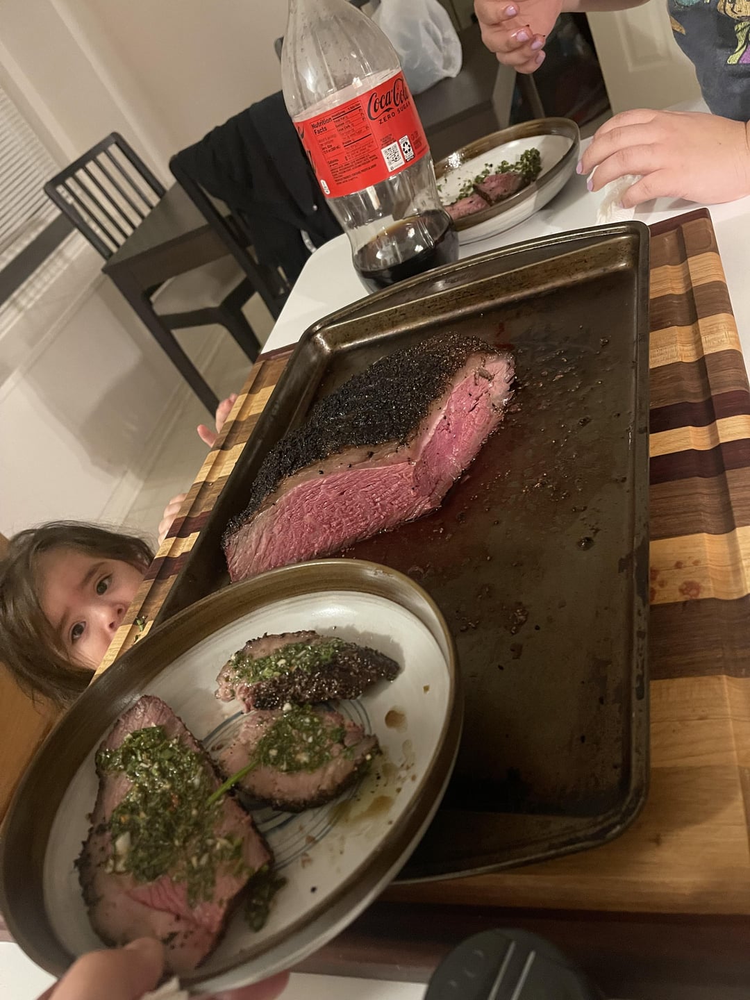 Few things I’d change, I would trim some fat off the cap, not too much but some. Taste was great but it got a bit overwhelming after a couple bites of it.