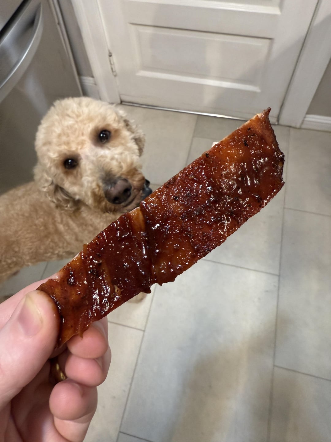 Dog is praying you to drop that rib lol