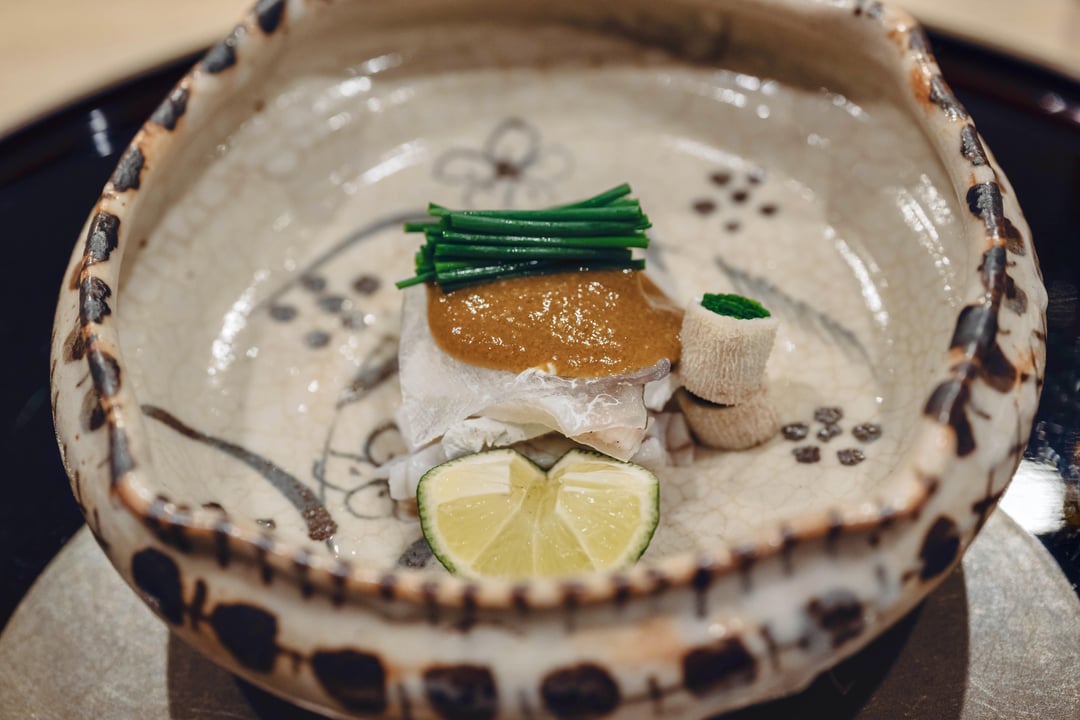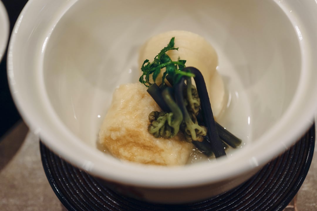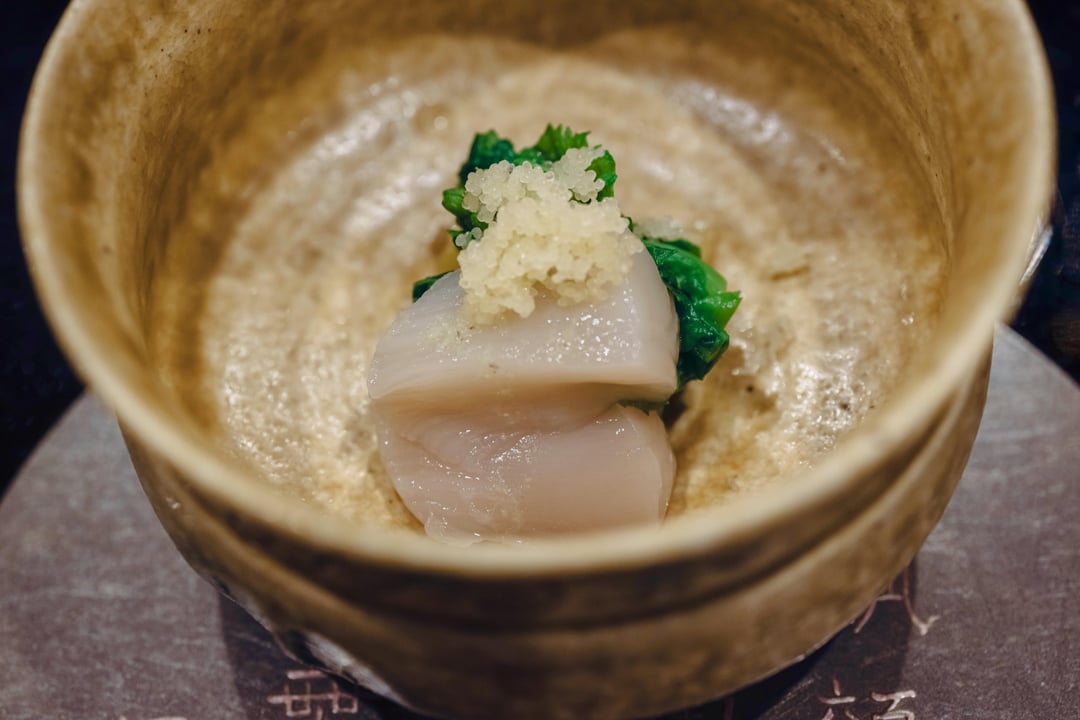 The restaurant is two floors, the first floor is private dining room while the counter space is on second floor along with another small dining room. Only two local diners joined me later. The chef wasn’t very talkative, other than introducing each dish and checking how we enjoyed the dishes. I could see that he focused quite a lot on the details, making sure the tiny details were properly arranged before serving. Often making adjustments like picking a different shaped garnish or display piece. He speaks a bit of English but I told him it was alright to explain each dish in Japanese to make it easier.