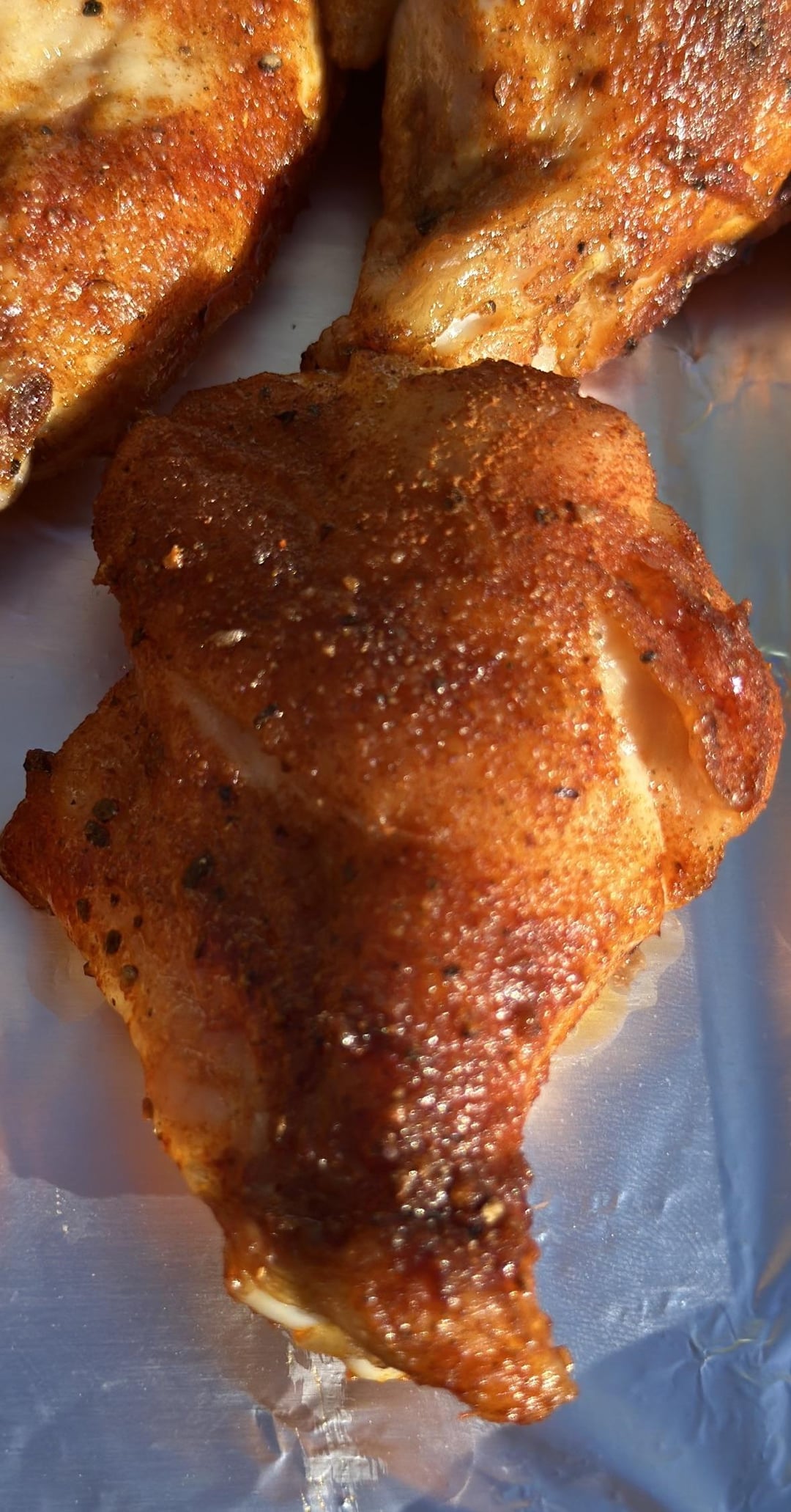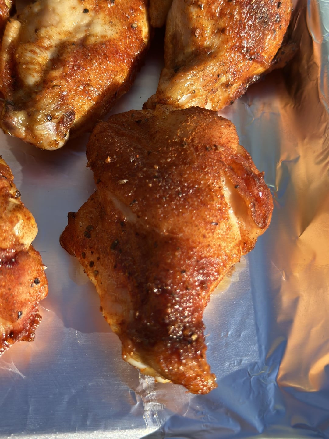 Look great! You can pull them 165-170 as they will hit 175 with carryover cooking. I gotta try this rub.