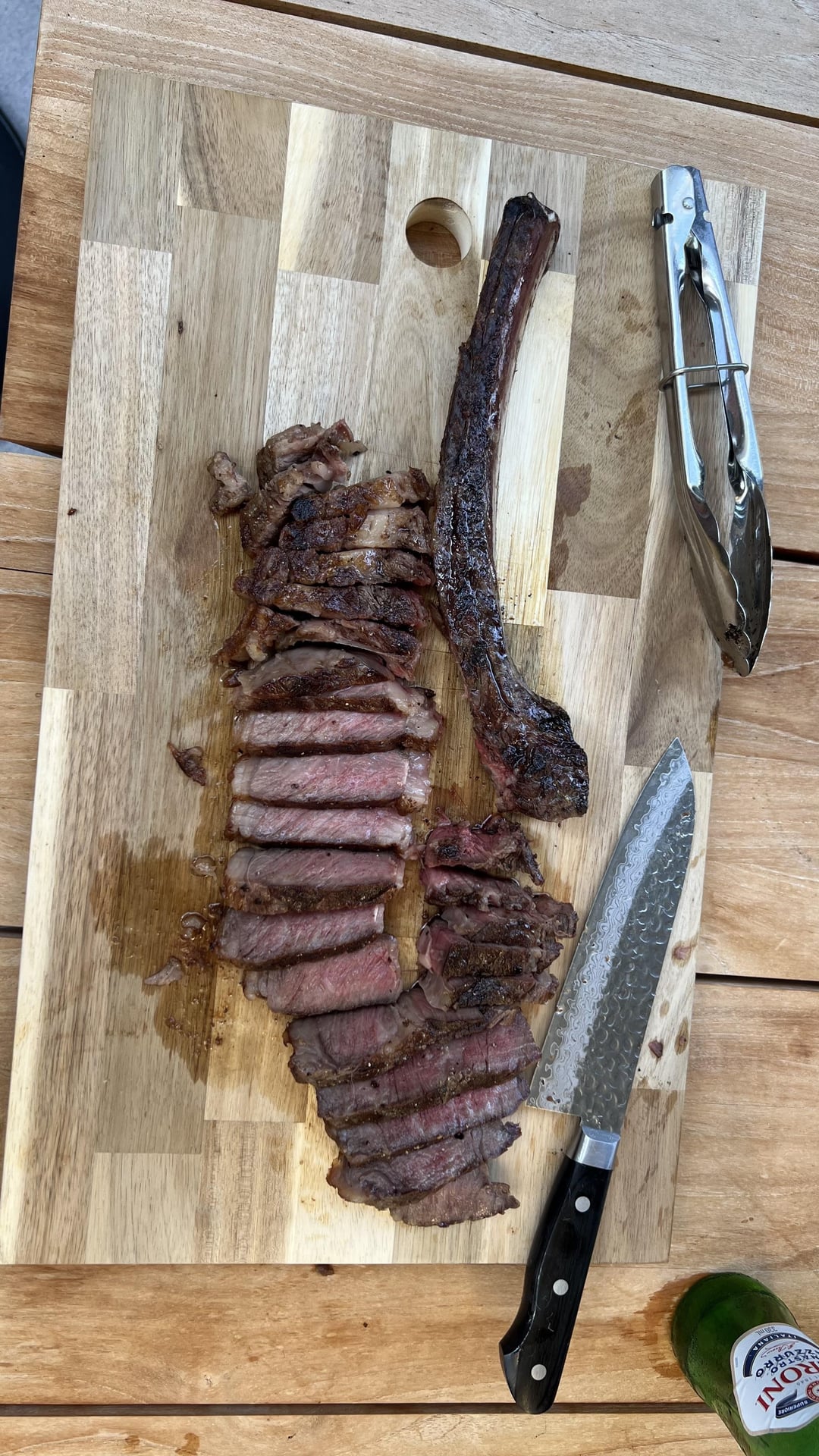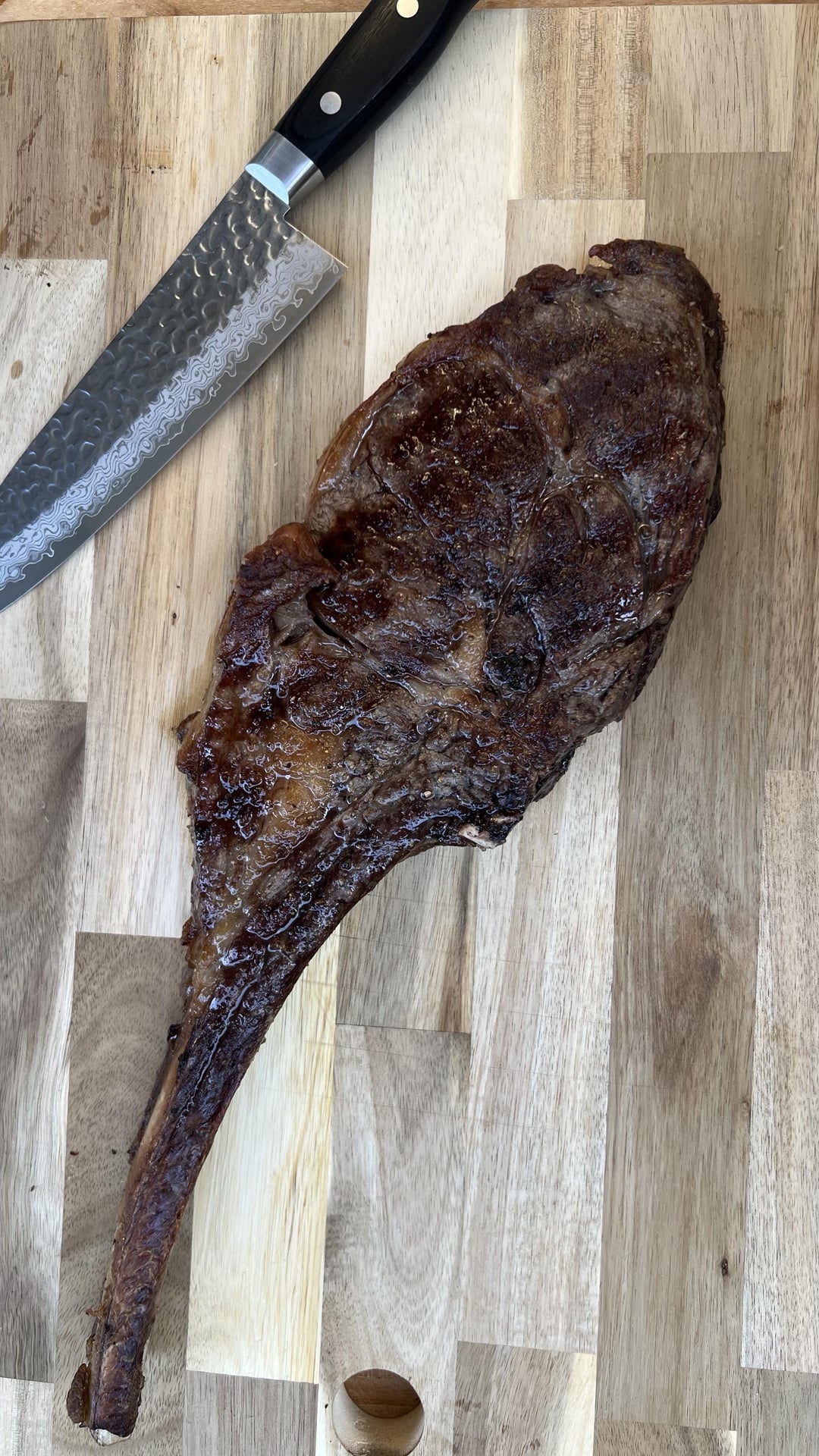 Great looking Tomahawk with excellent marbling. A little too much over the medium point in my opinion, but looking at the fattyness of the steak I’m sure it still tasted great.