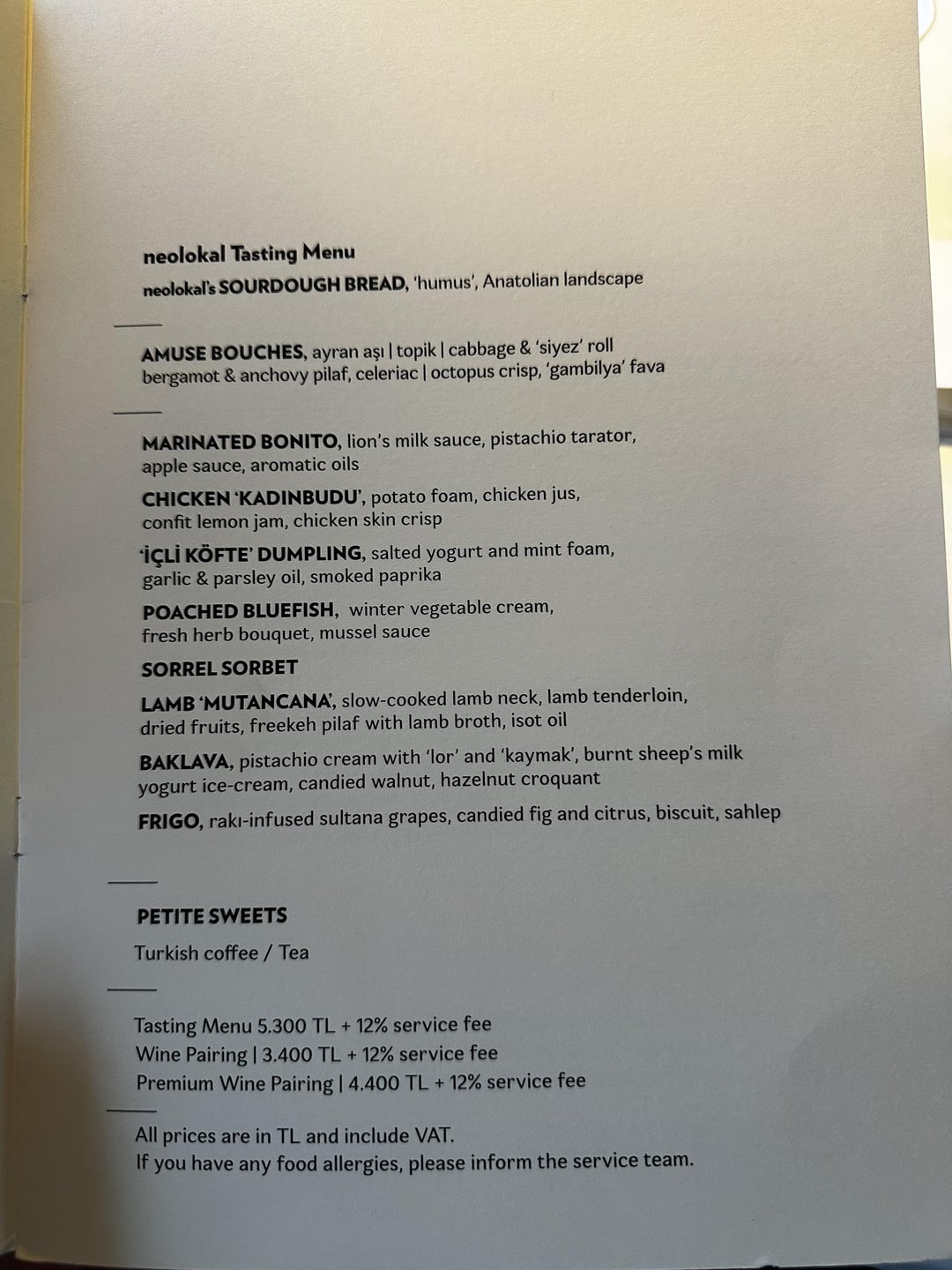 I will say with wine pairing I thought the price was quite steep compared to other 1 star restaurants of a similar quality (~11,000 TL) but I was satisfied with the meal and there were some very delicious courses.