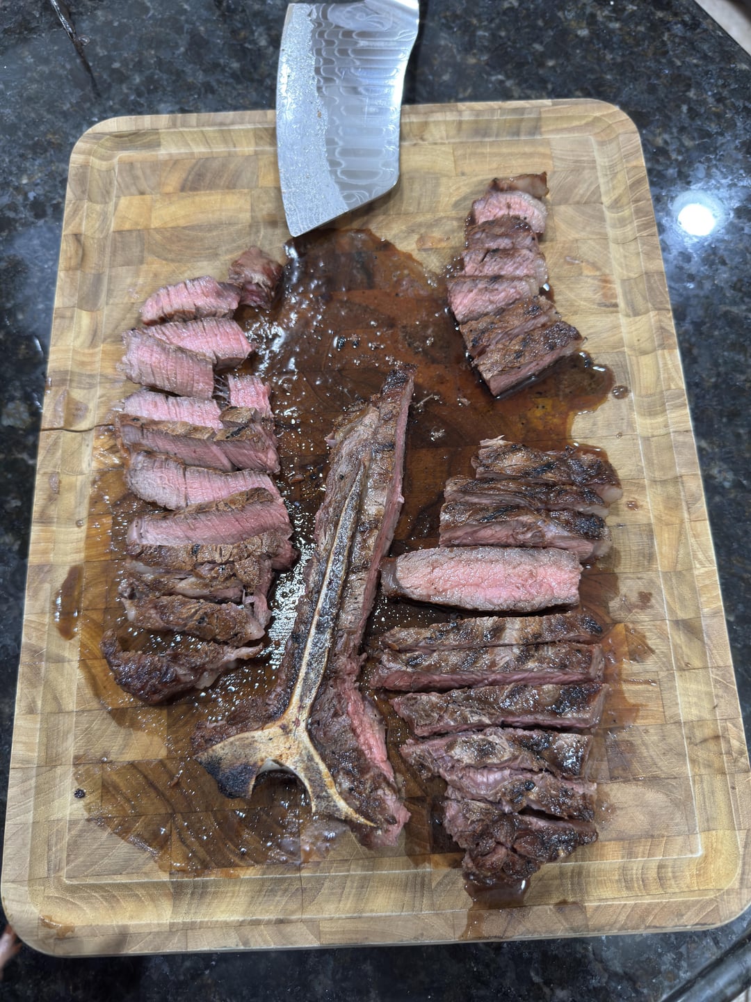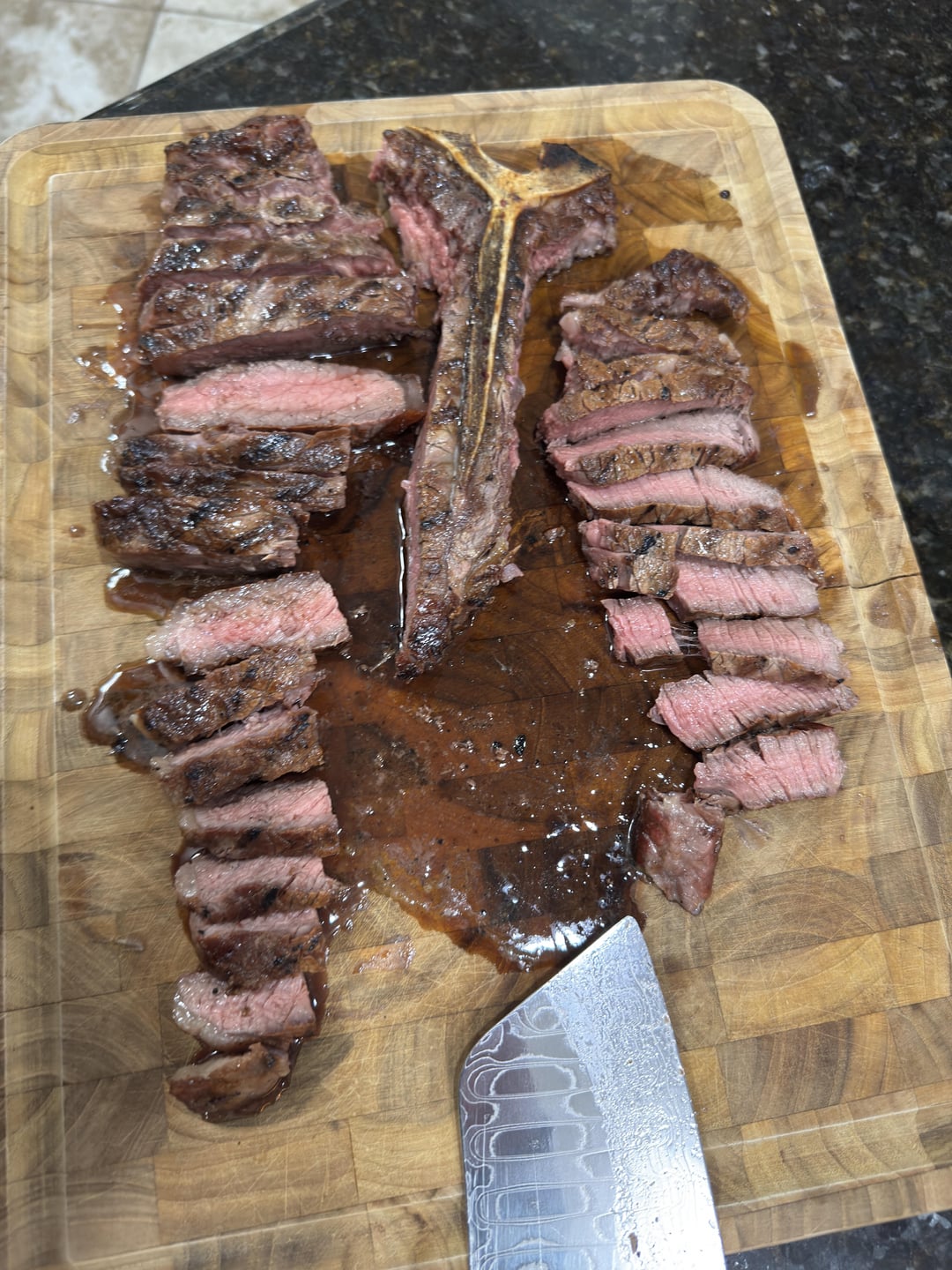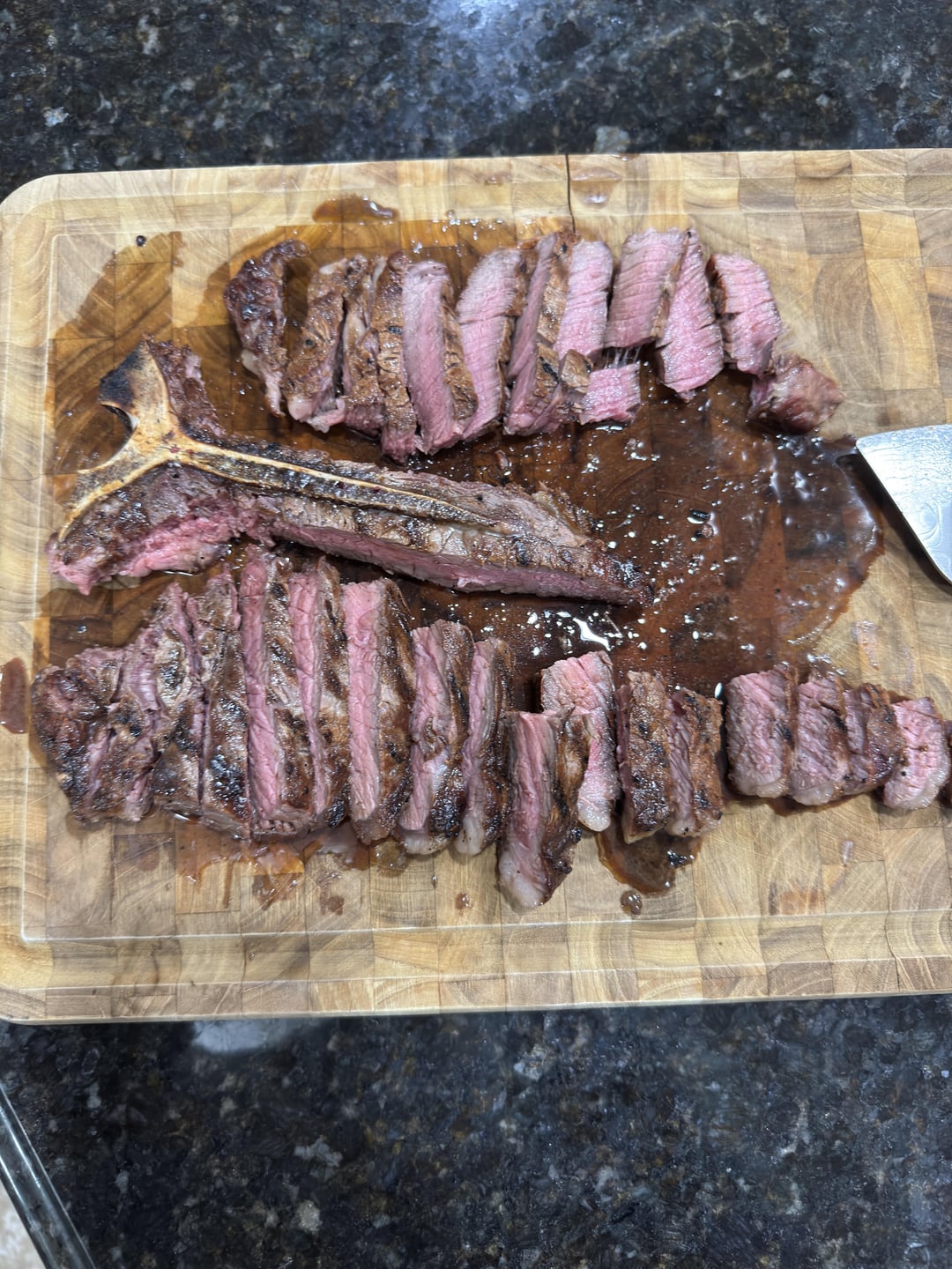 I hate cooking a Porterhouse. I hate how the filet always gets hotter than the strip. You did a good job here for a teak this thin.