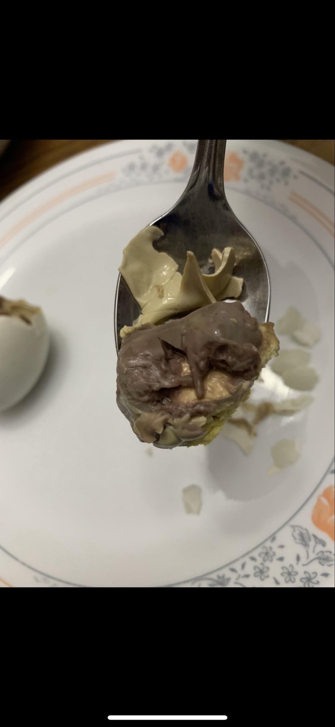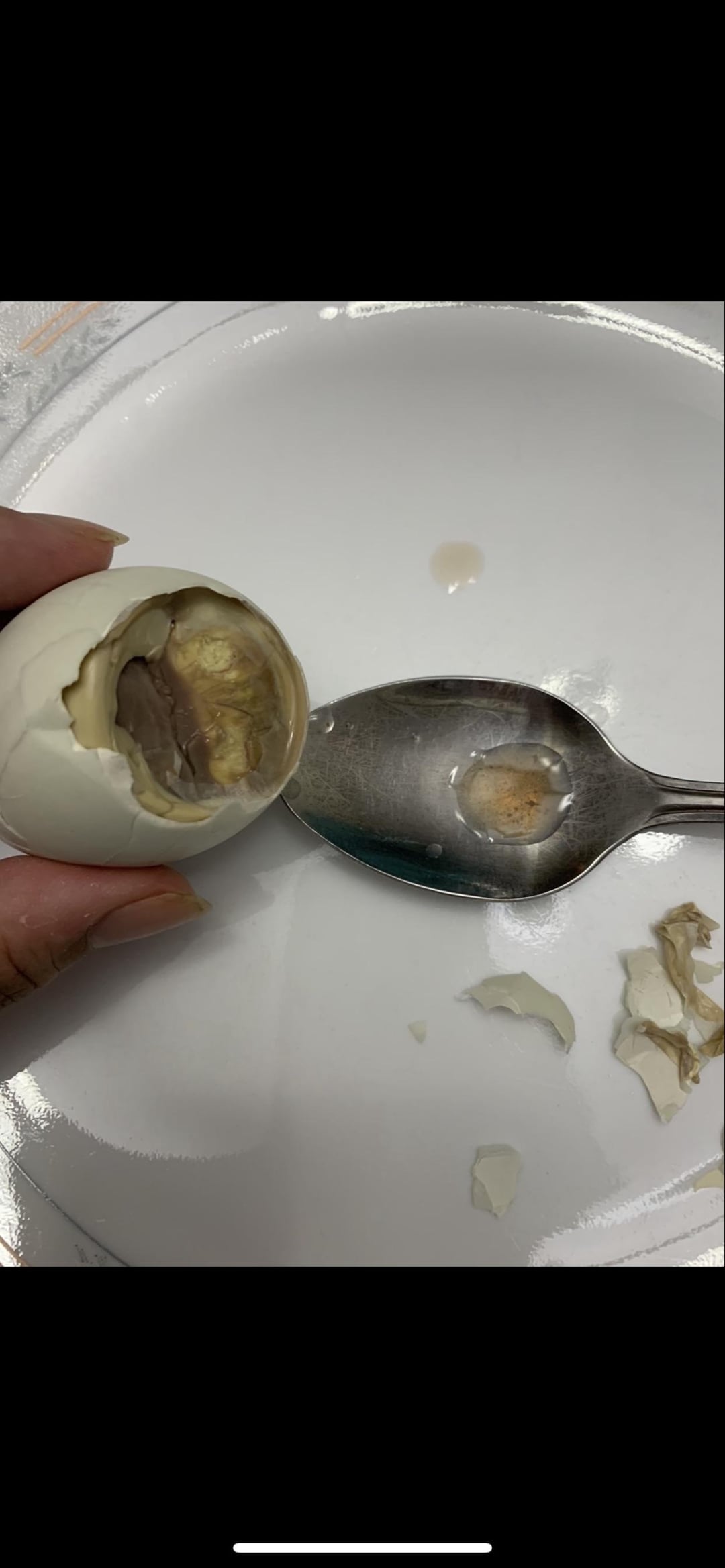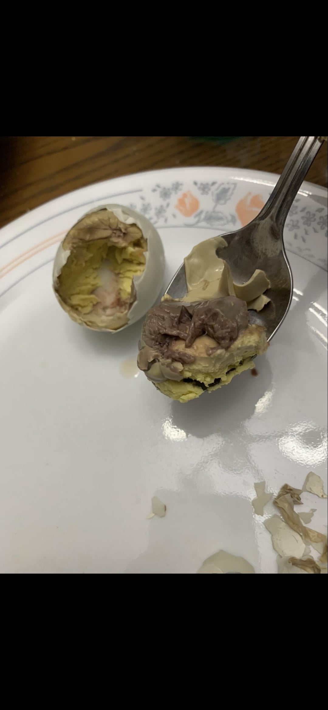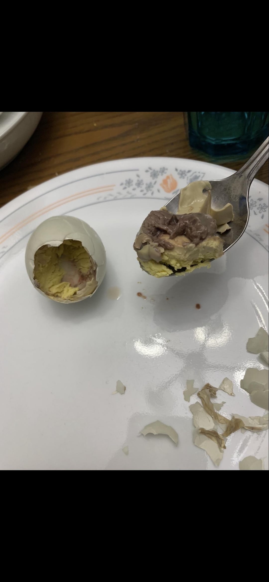 Trying boiled duck egg embryo, has a little baby duck inside