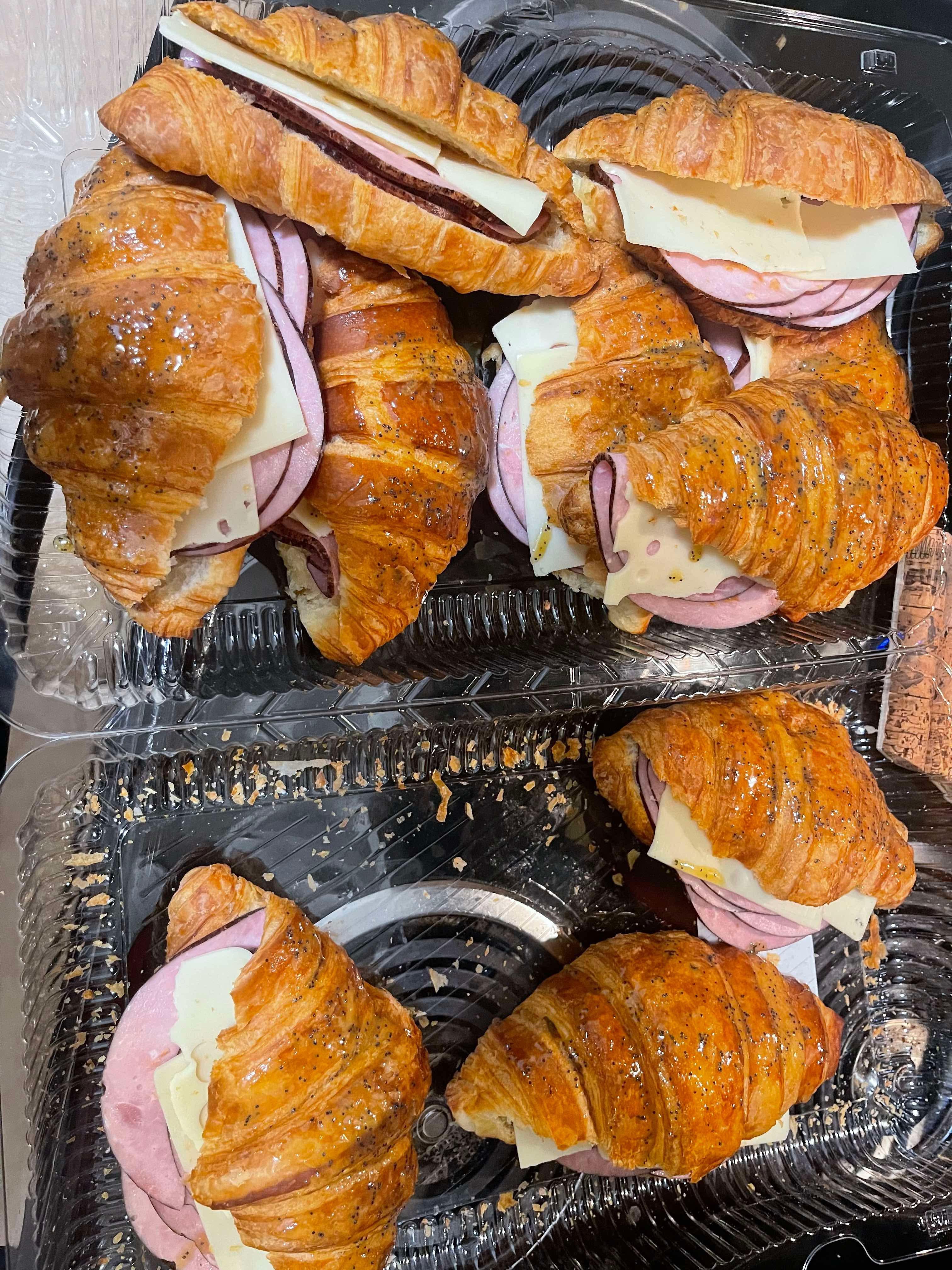 Costco croissants, pack of Kirkland ham with a package of Swiss cheese. I also whipped up a honey mustard glaze for the top.
