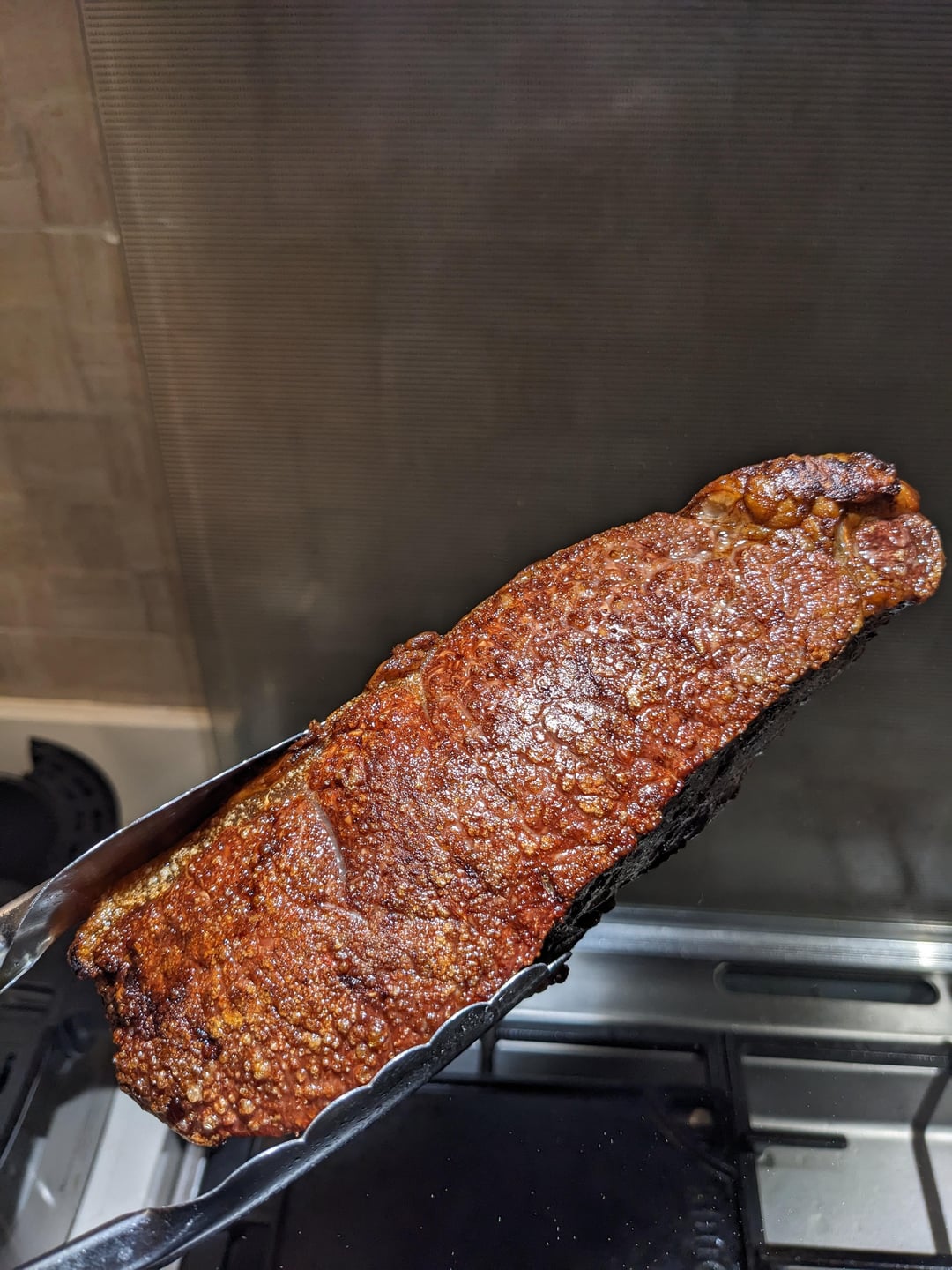 I don’t give a shit about the internal color. That’s a perfect crust. I’d eat that steak any time, any where, any way it was served. Great job.