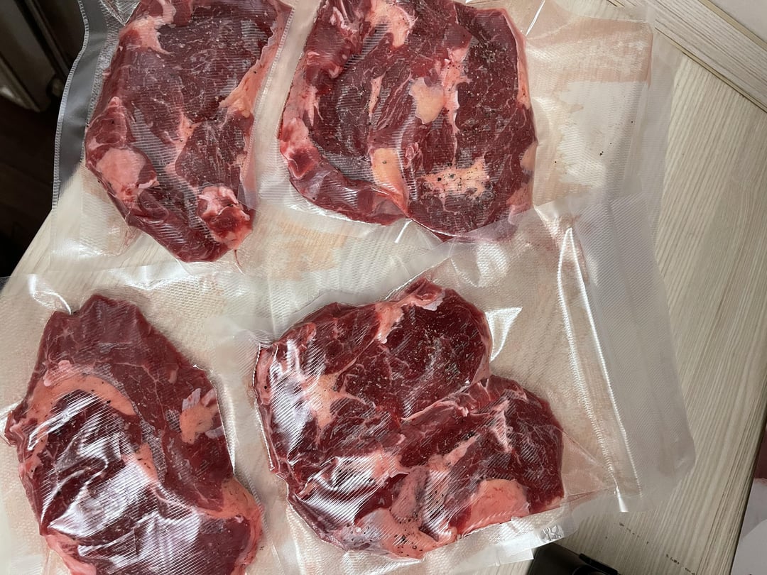 Takes a little practice to get the sear right after sous vide but overall beautiful steak! Would recommend you to experiment a little bit with seasoning your steaks before you vacuum seal them. I always put some keltic sea salt, pepper, thyme and garlic powder on them then seal. Comes out very tasty each time. Also black pepper can help with the sear in my experience