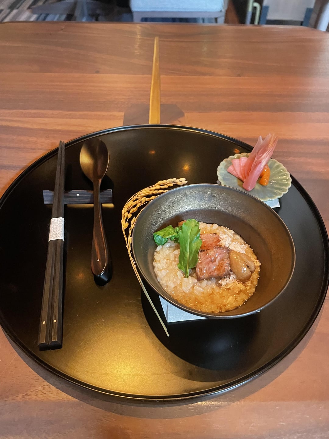 * Koshikari, short rib, smoked American chestnut, broccoli and pickled vegetable