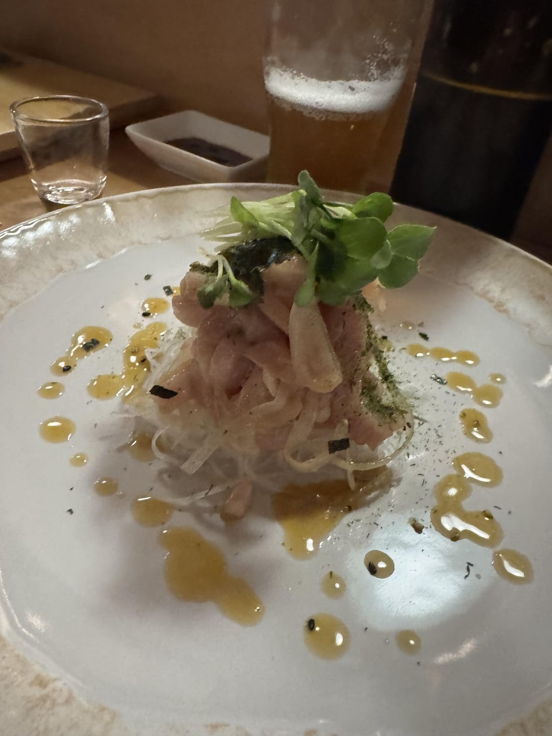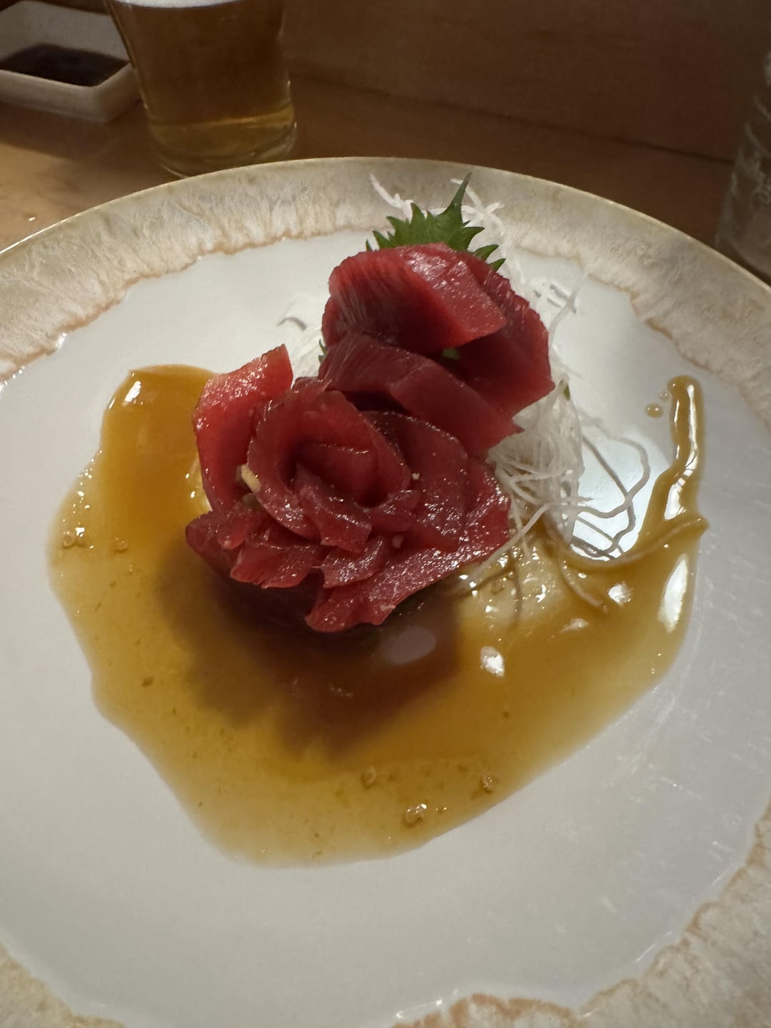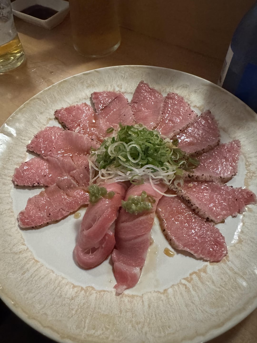 The seared tuna sashimi looks particularly lovely