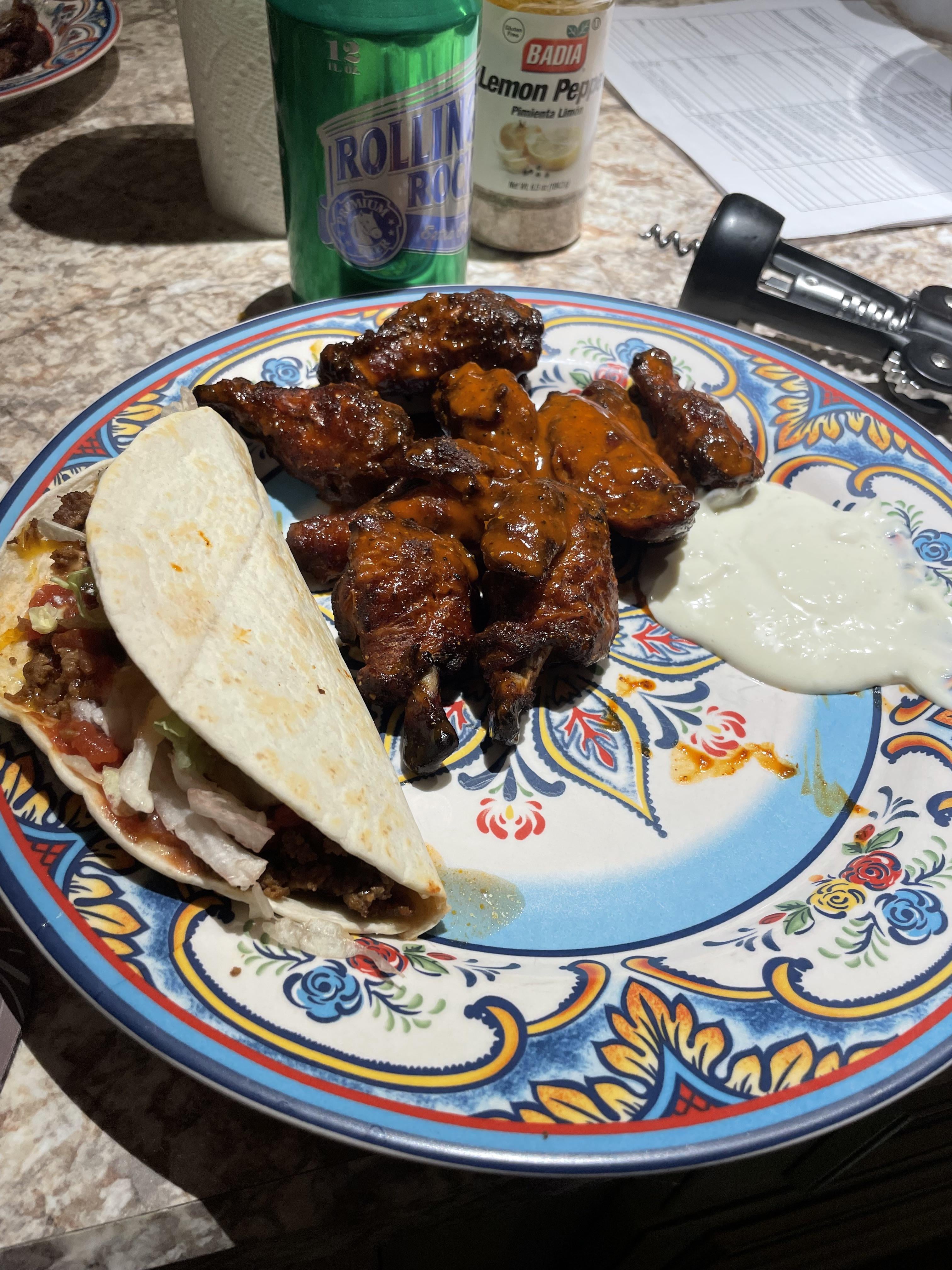 Smoked at 240f for around 2 hours then popped in the air fryer for 10 mins at 450f to crisp up. Sauced in a mix of Texas Pete’s, Franks Nashville Hot and lemon pepper.