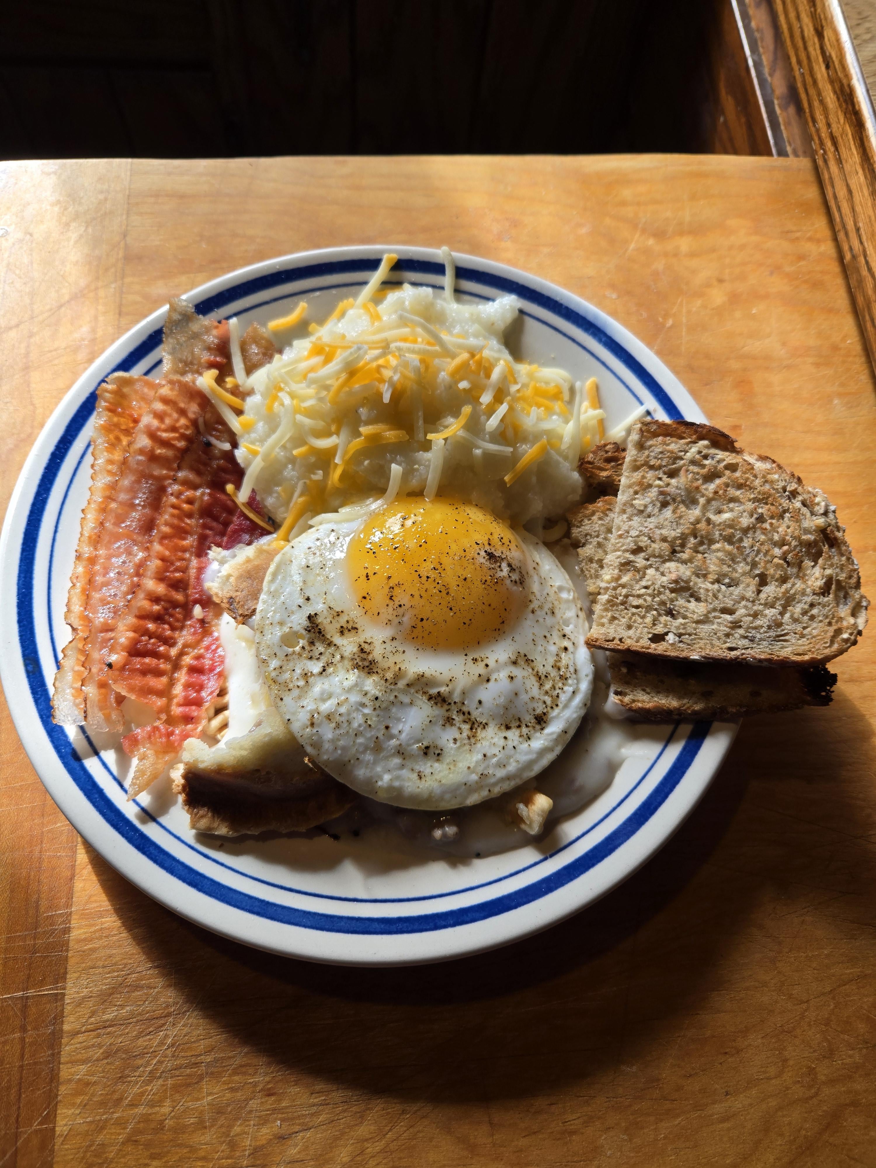Breakfast pot pie with a duck egg, cheesy grits, bacon and wheat toast.by Sure-Entrepeneur219 Write A CommentYou must be logged in to post a comment.